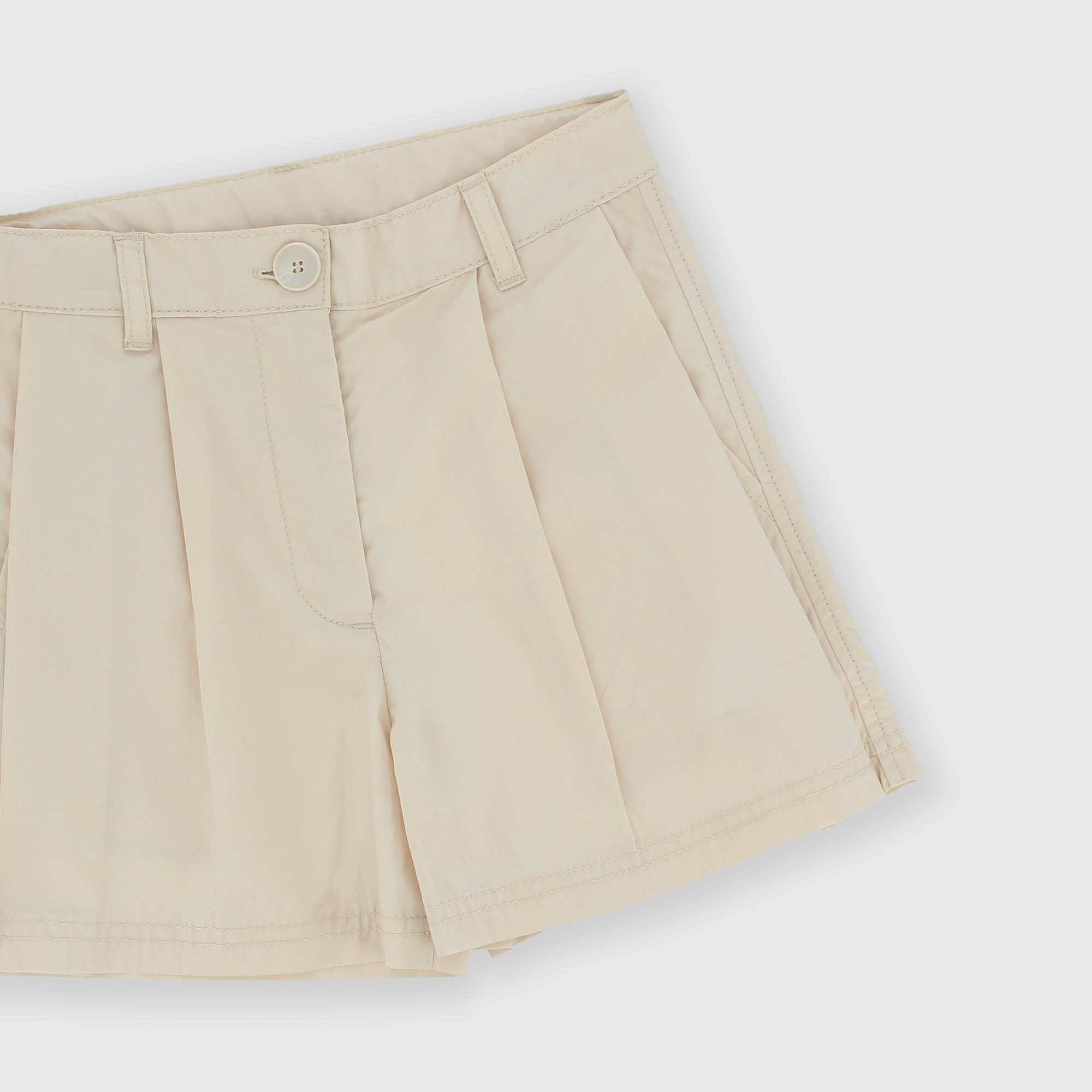 Shorts in popeline con vita regolabile all'interno. Chiusura con bottone e zip. Tasche alla francese. Pinces sul davanti.
