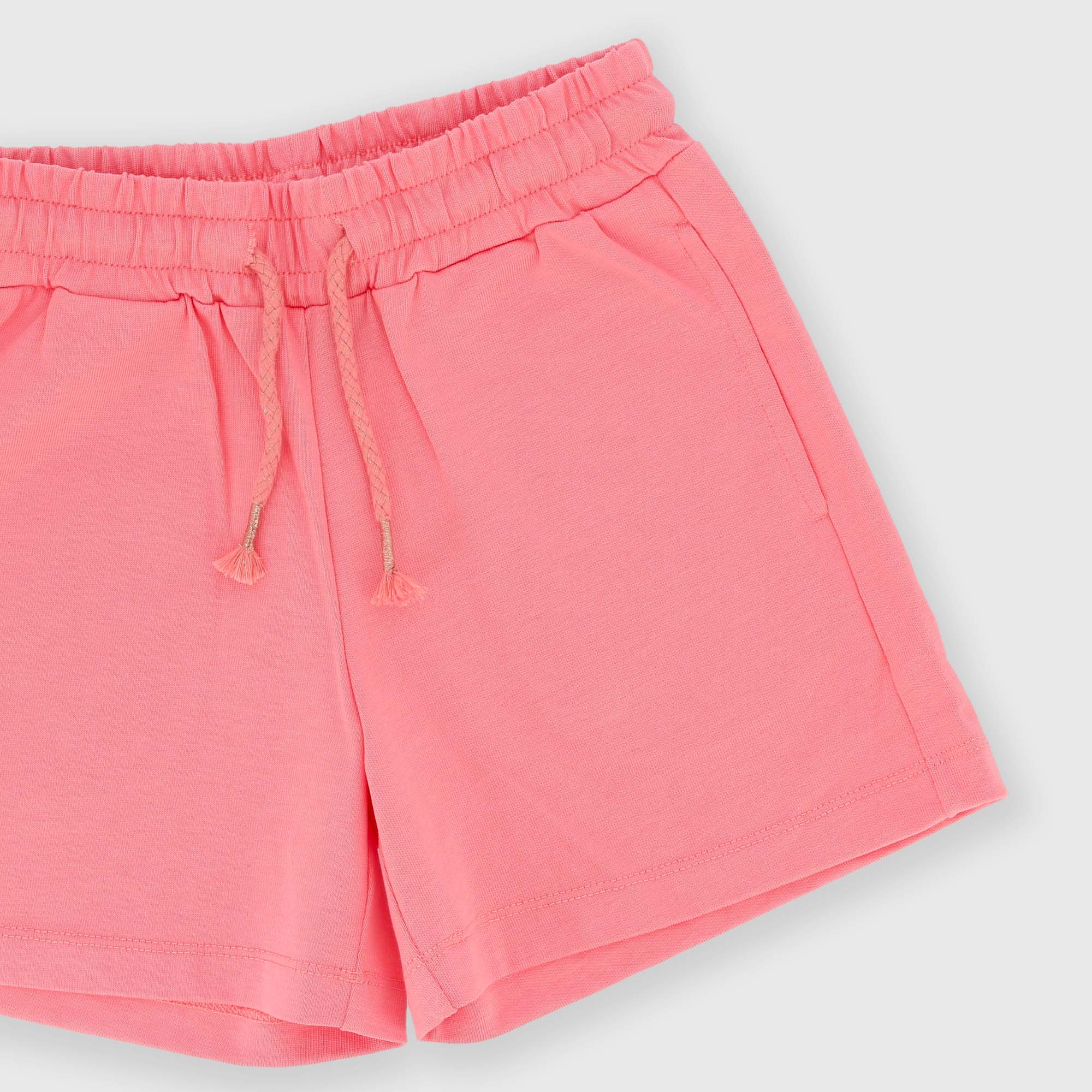 Shorts in Jersey pesante con vita elasticizzata e lacci lurex frontali. Tasche a scomparsa sui lati.