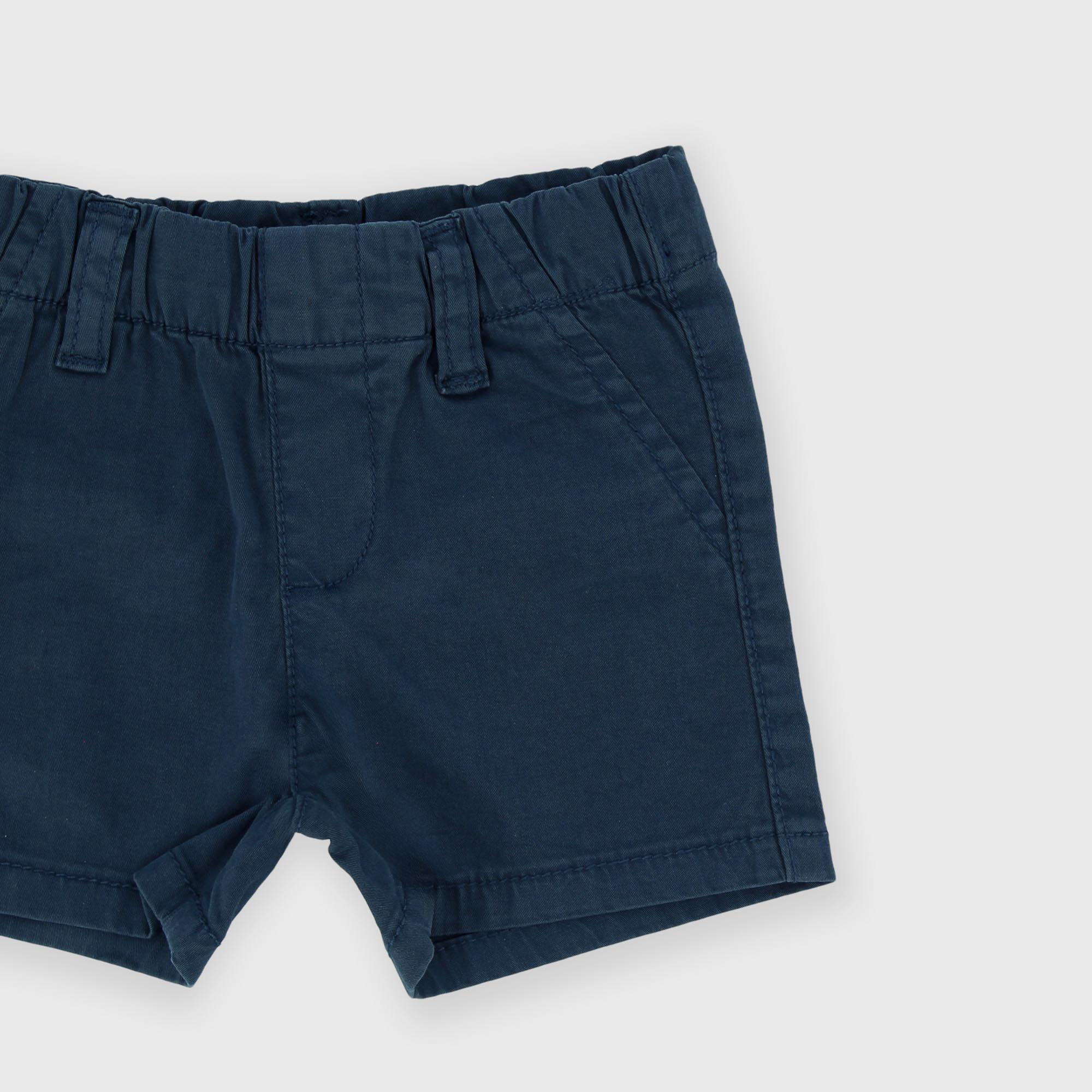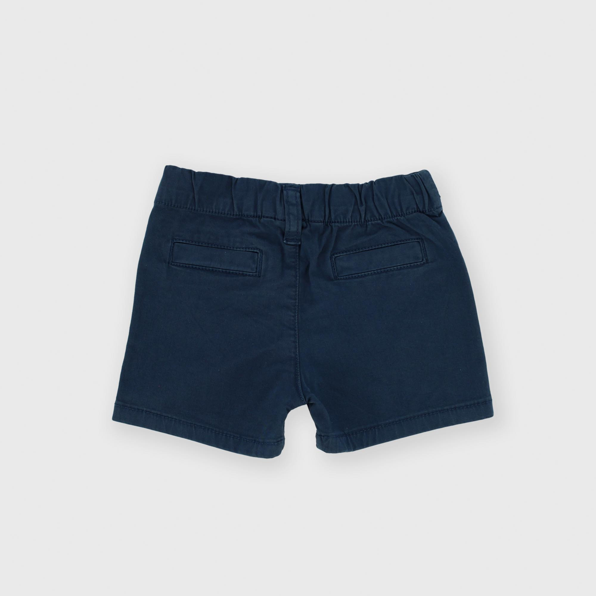 Pantaloncino in gabardina stretch con vita elasticizzata. Finte tasche alla francese sul davanti e a filetto sul retro. Passanti in vita.