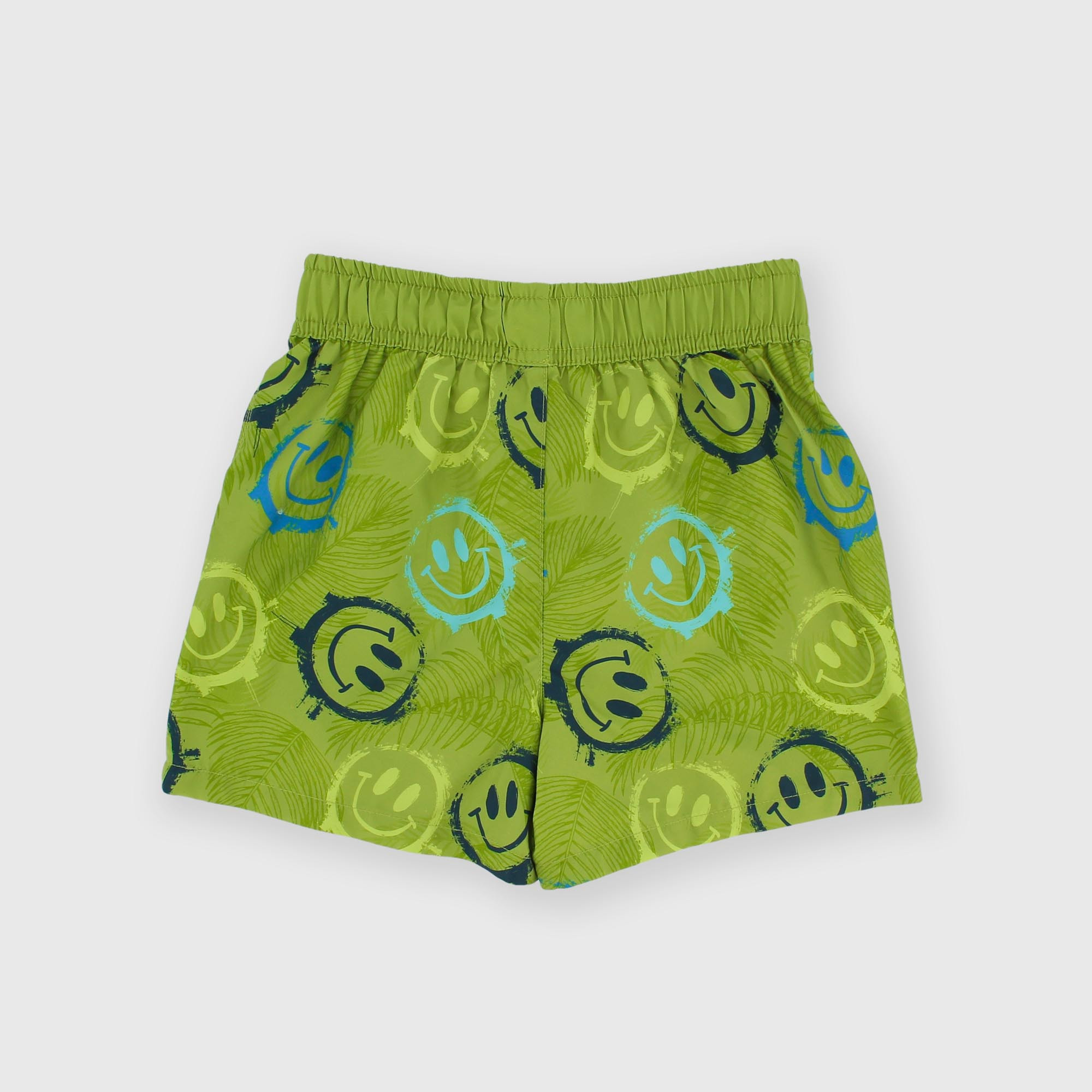 Pantaloncino mare con vita elasticizzata e lacci frontali. Motivo smile. Mutandina interna in micro-rete.