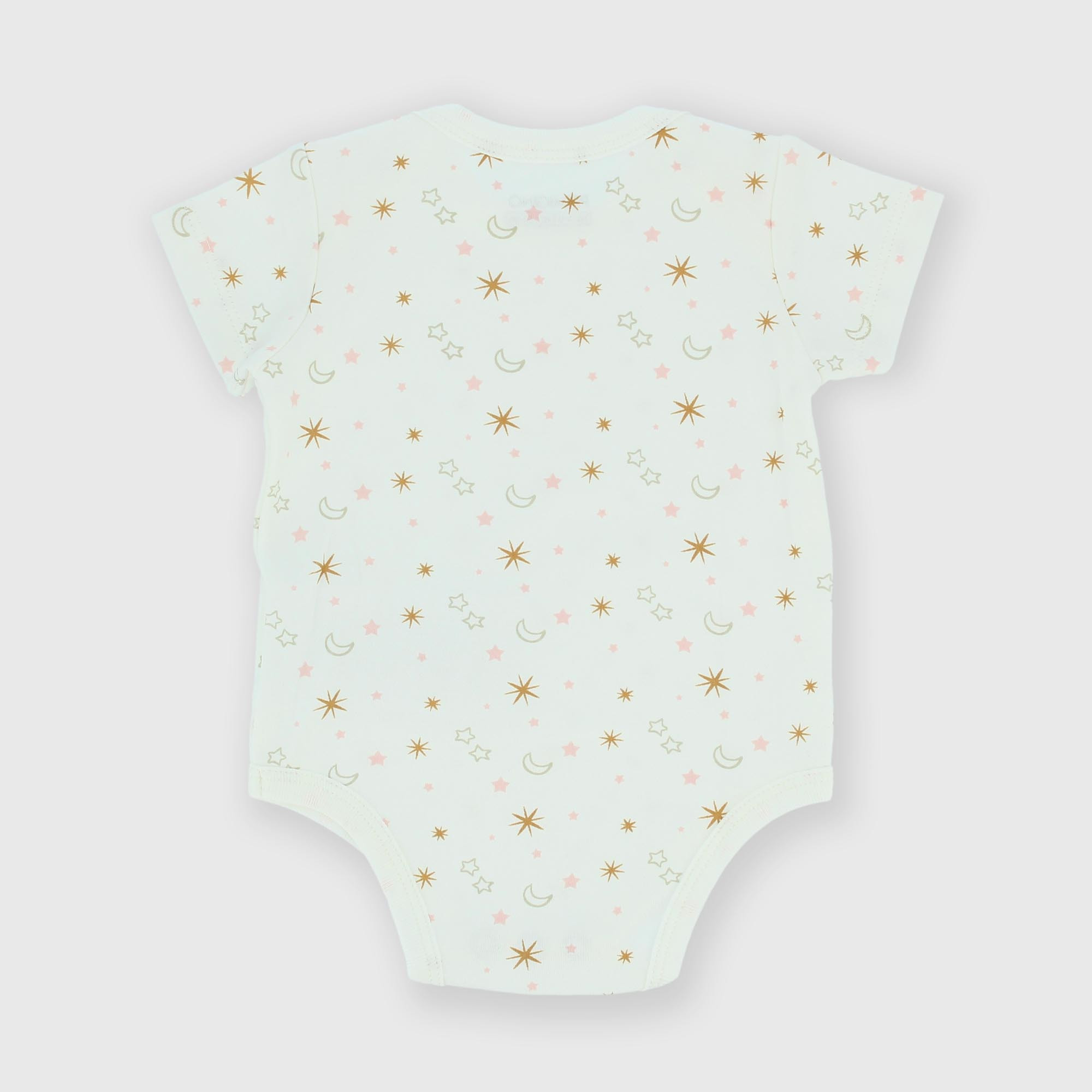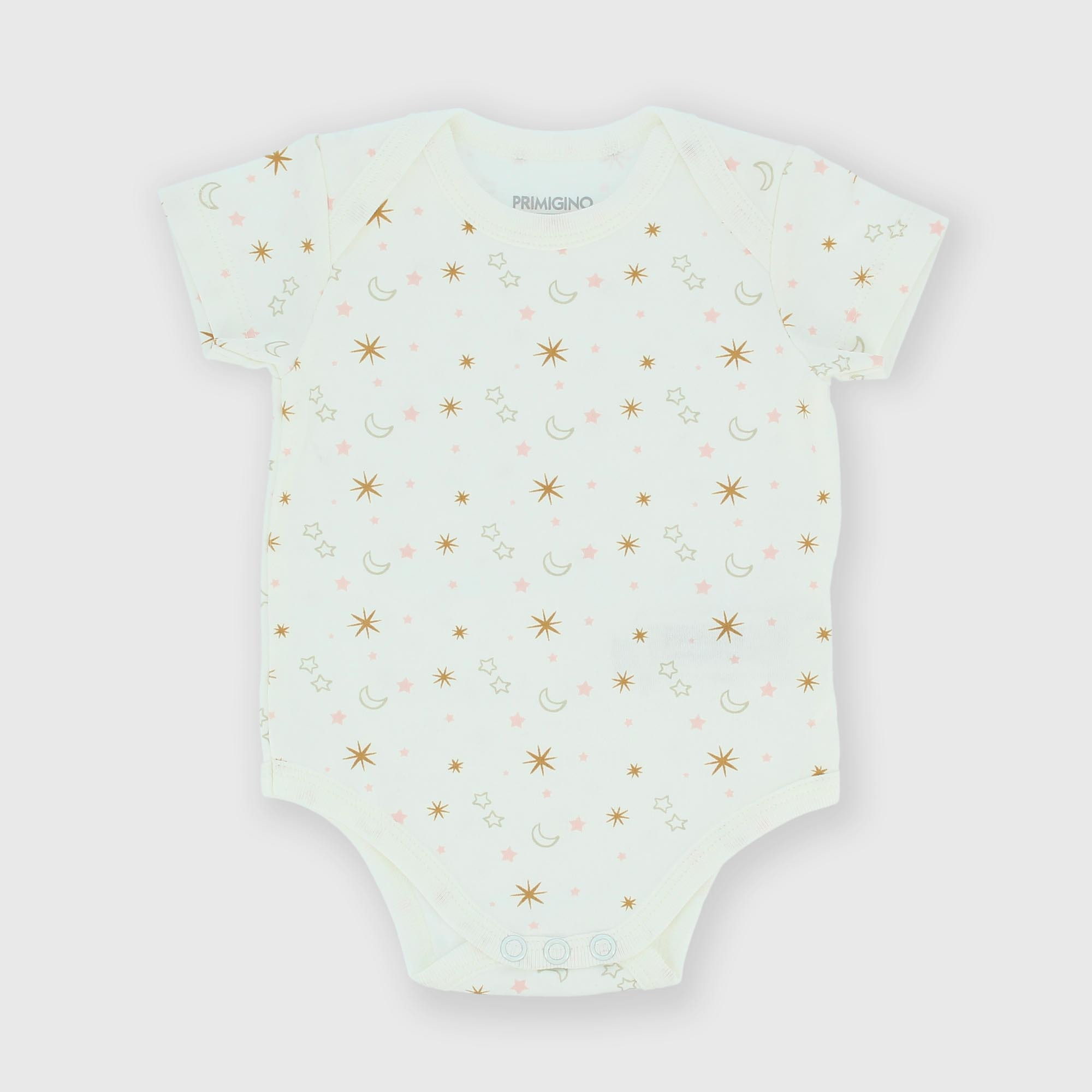 Body in Interlock girocollo, a maniche corte. Chiusura con bottoni automatici sulla parte inferiore. Stampa all-over.