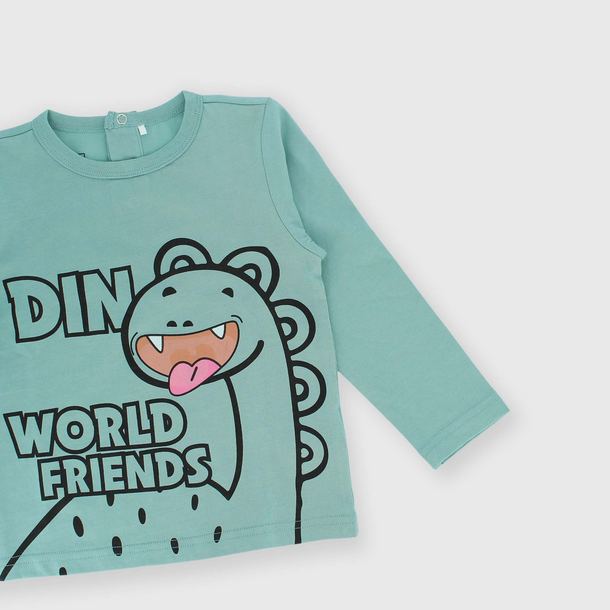 Completo pigiama in Jersey. Maglietta girocollo a maniche lunghe, chiusura posteriore con bottoni automatici. Stampa sul davanti. Pantalone con vita elasticizzata e stampa all-over dinosauri. Tasca a toppa sul retro e fondo elasticato.