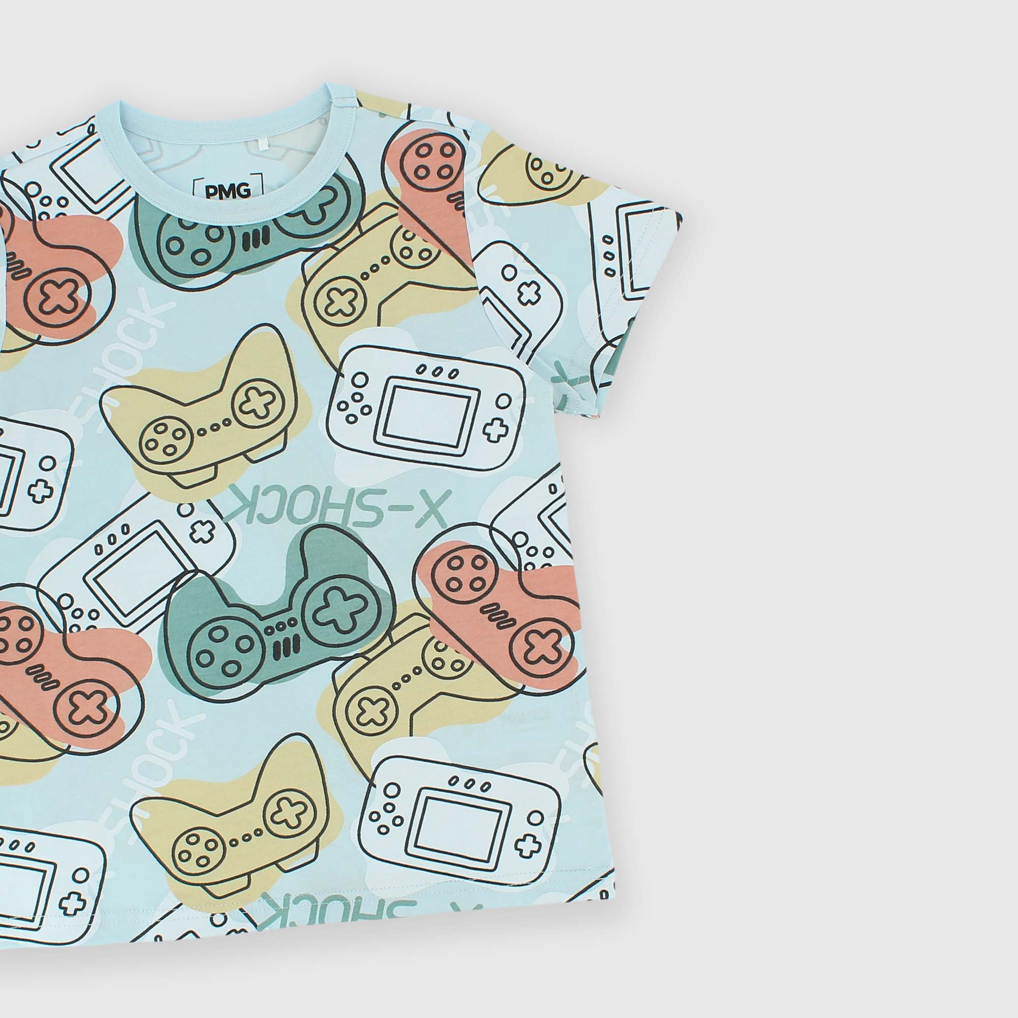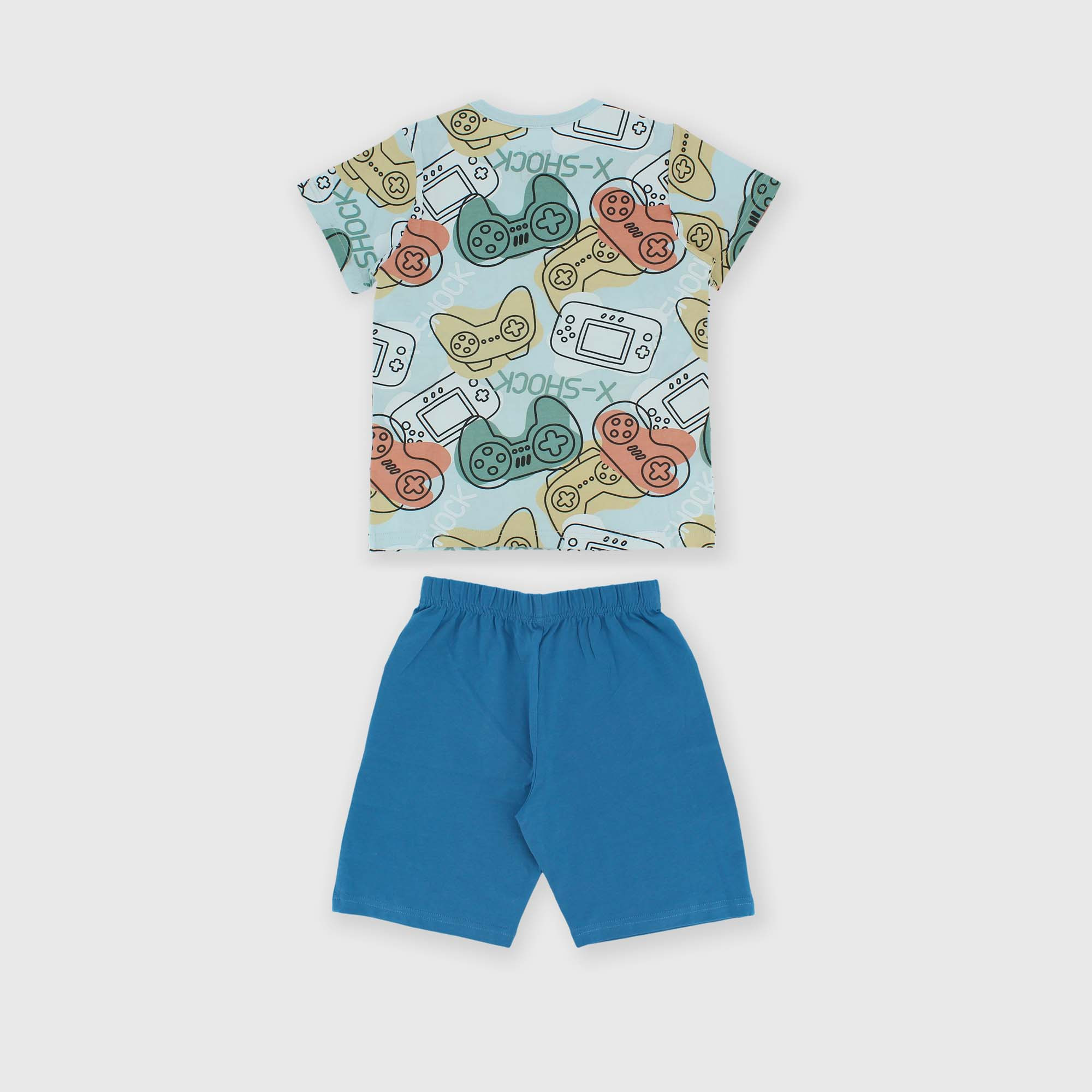 Completo pigiama in Jersey. Maglietta girocollo a maniche corte con stampa all-over videogame. Bermuda con vita elasticizzata.
