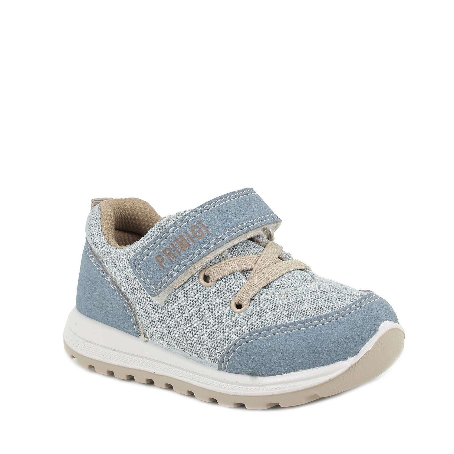 Sneakers da bambino grigio e celeste con strap