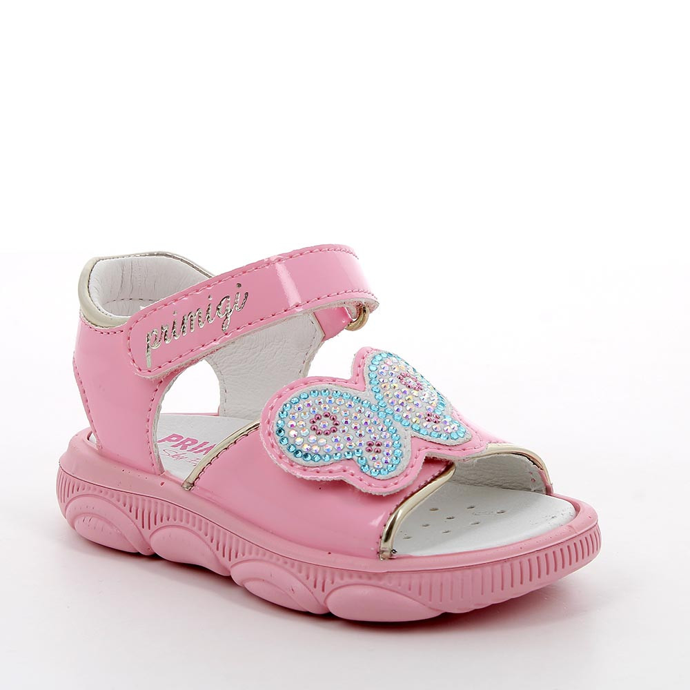 Sandali per bambina caratterizzati da un design delicato e colorato. La fascia anteriore regolabile è impreziosita da strass colorati che donano brillantezza. La chiusura è con strappo in velcro. La caviglia è protetta da una piccola imbottitura. Questi sandaletti primi passi hanno una suola spessa che presenta una struttura a bolle arrotondate che garantisce comfort e ammortizzazione durante la camminata. Sia la fodera che il sottopiede in pelle assicurano igiene e traspirazione.
