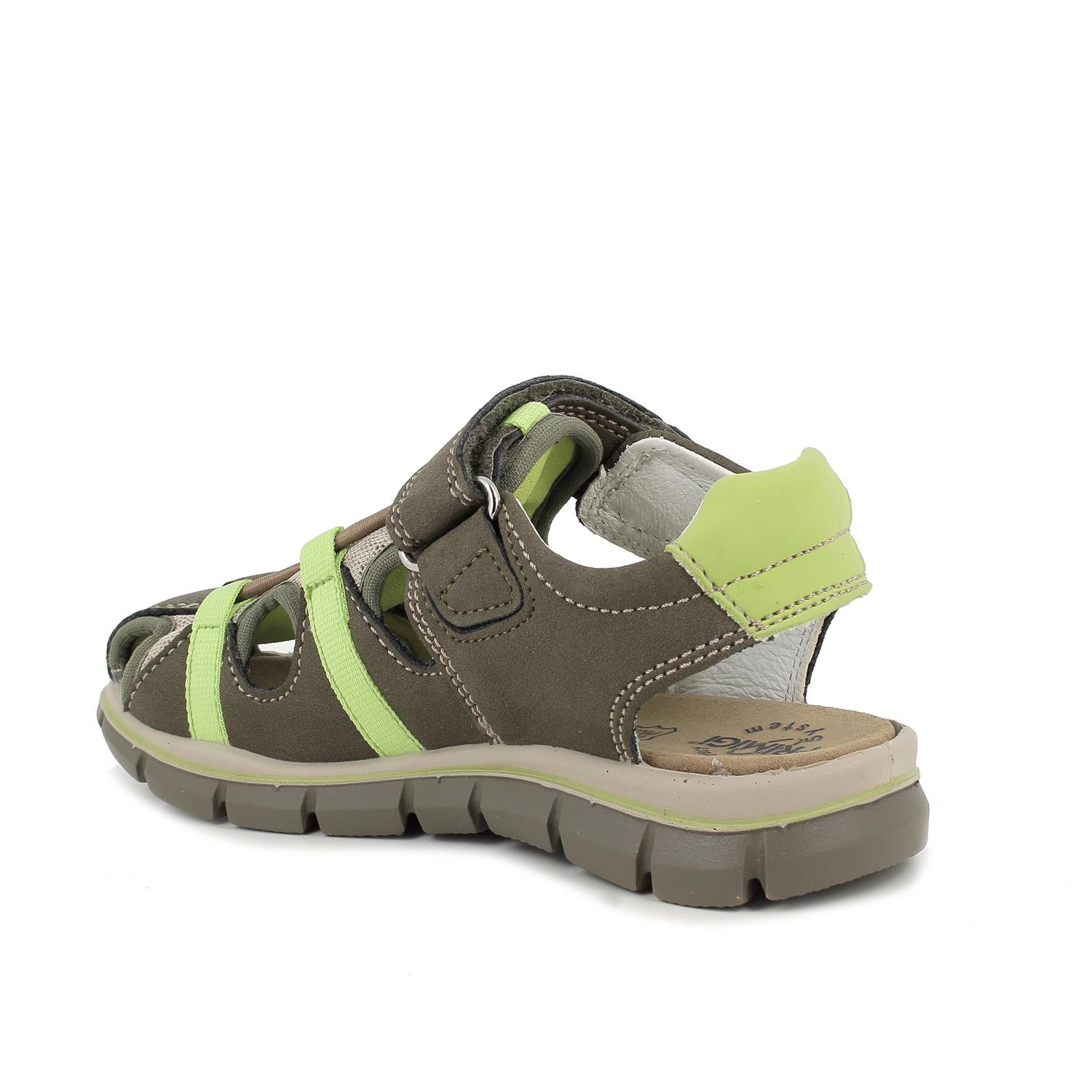 Sandali semiaperti di ispirazione tecnica dagli elevatissimi standard di leggerezza e comodità che offrono contemporaneamente la freschezza necessaria in estate e la protezione adeguata durante le avventure quotidiane. Il sottopiede in pelle scamosciata offre un appoggio ideale ed igienico, per garantire il giusto benessere per tutta la giornata. La suola, dotata di particolari scanalature trasversali, è particolarmente flessibile ed asseconda i movimenti con leggerezza.