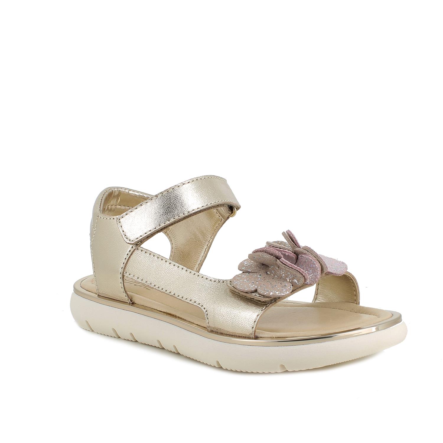 Sandali dalla silhouette sportiva con fiori in pelle sulla fascia davanti, che è anche regolabile. Hanno imbottitura posteriore alla caviglia. Il sottopiede, rigorosamente in pelle, rimane igienico ed è delicato al contatto. La suola piatta e spessa offre stabilità mentre isola al meglio dalle asperità del suolo.