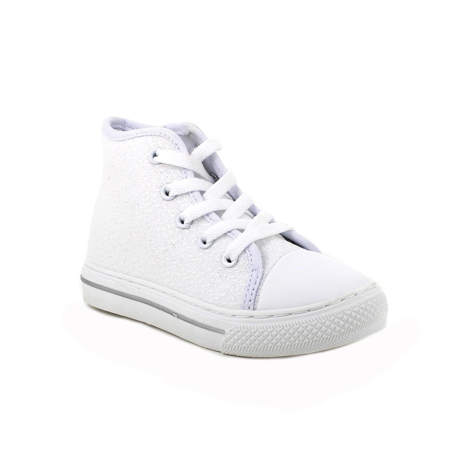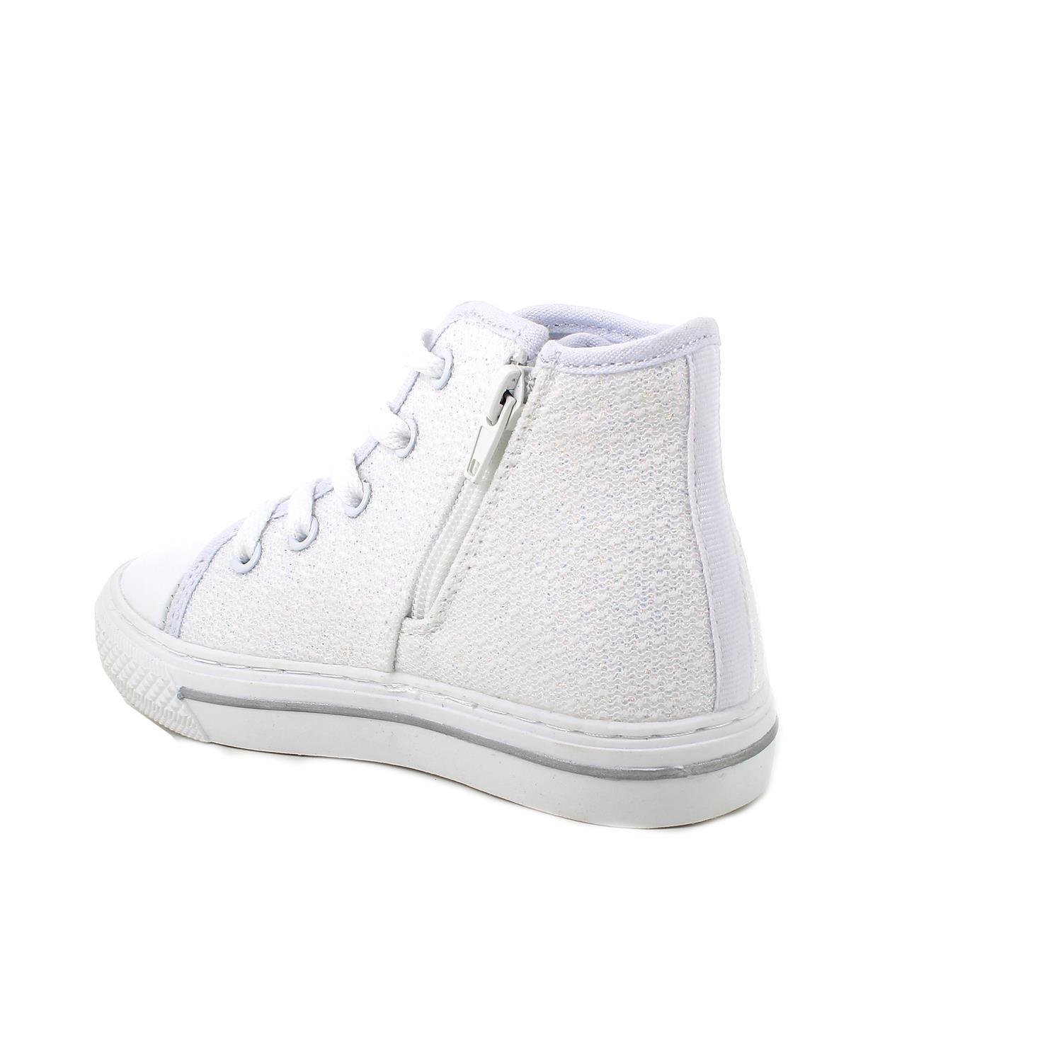 Sneakers alte da bambina in tessuto. Facili da abbinare. Oltre alle stringhe, hanno una pratica zip interna. La suola è piatta e con punta arrotondata. Il sottopiede è estraibile e rivestito in pelle per assicurare traspirabilità e igiene.