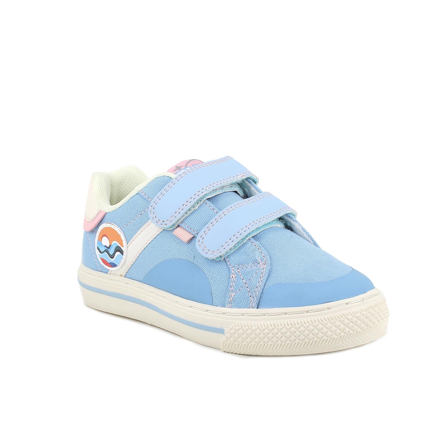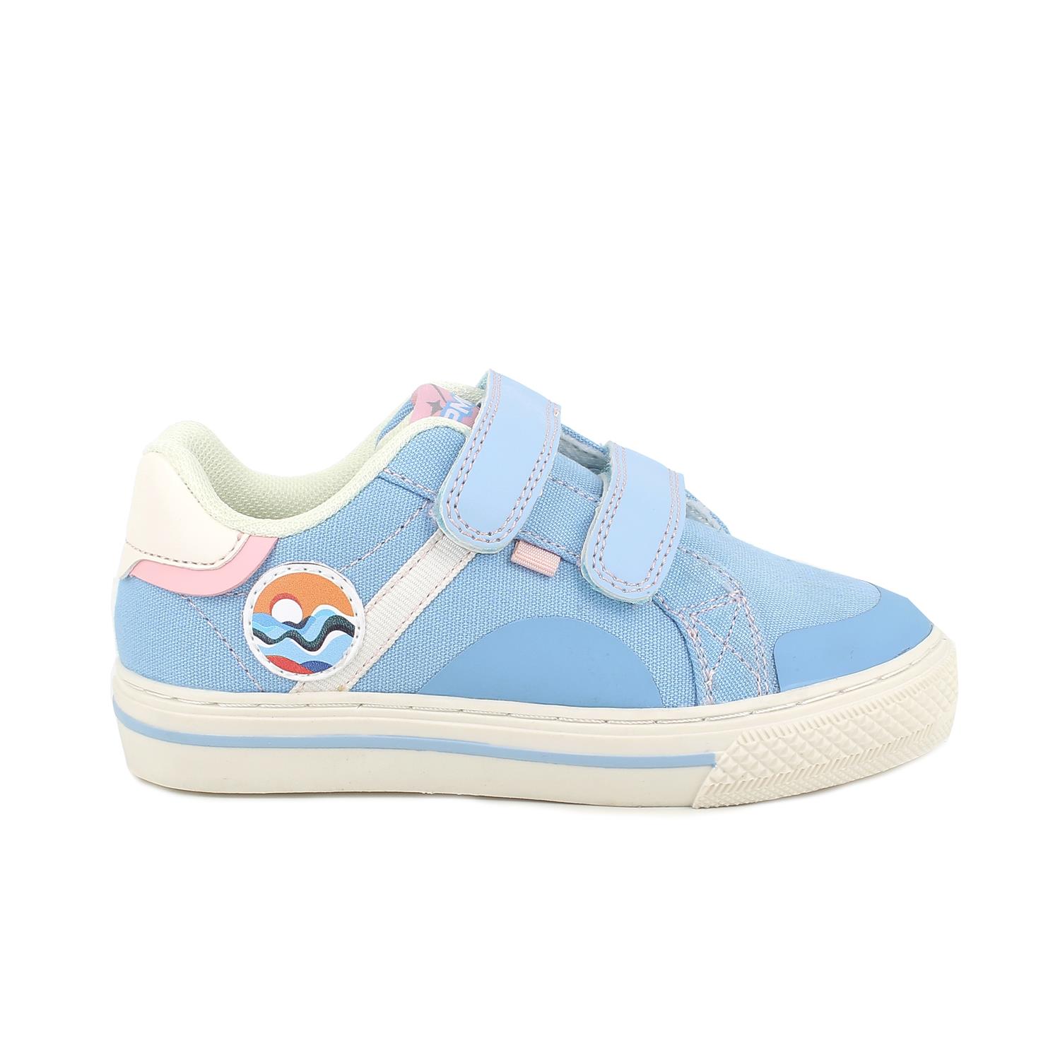 Sneakers da bambina celeste con strap