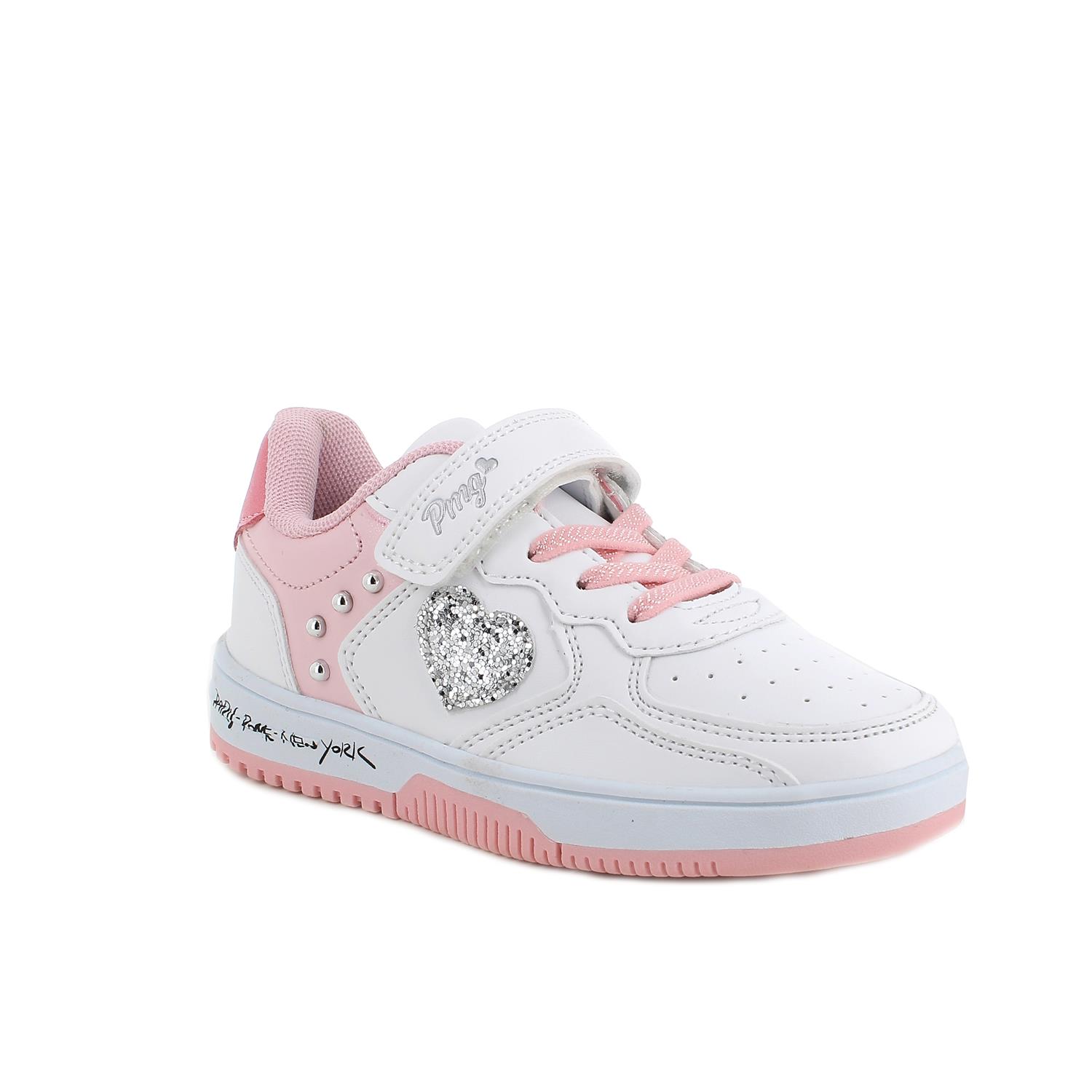 Sneakers da bambina bianco e rosa con strap