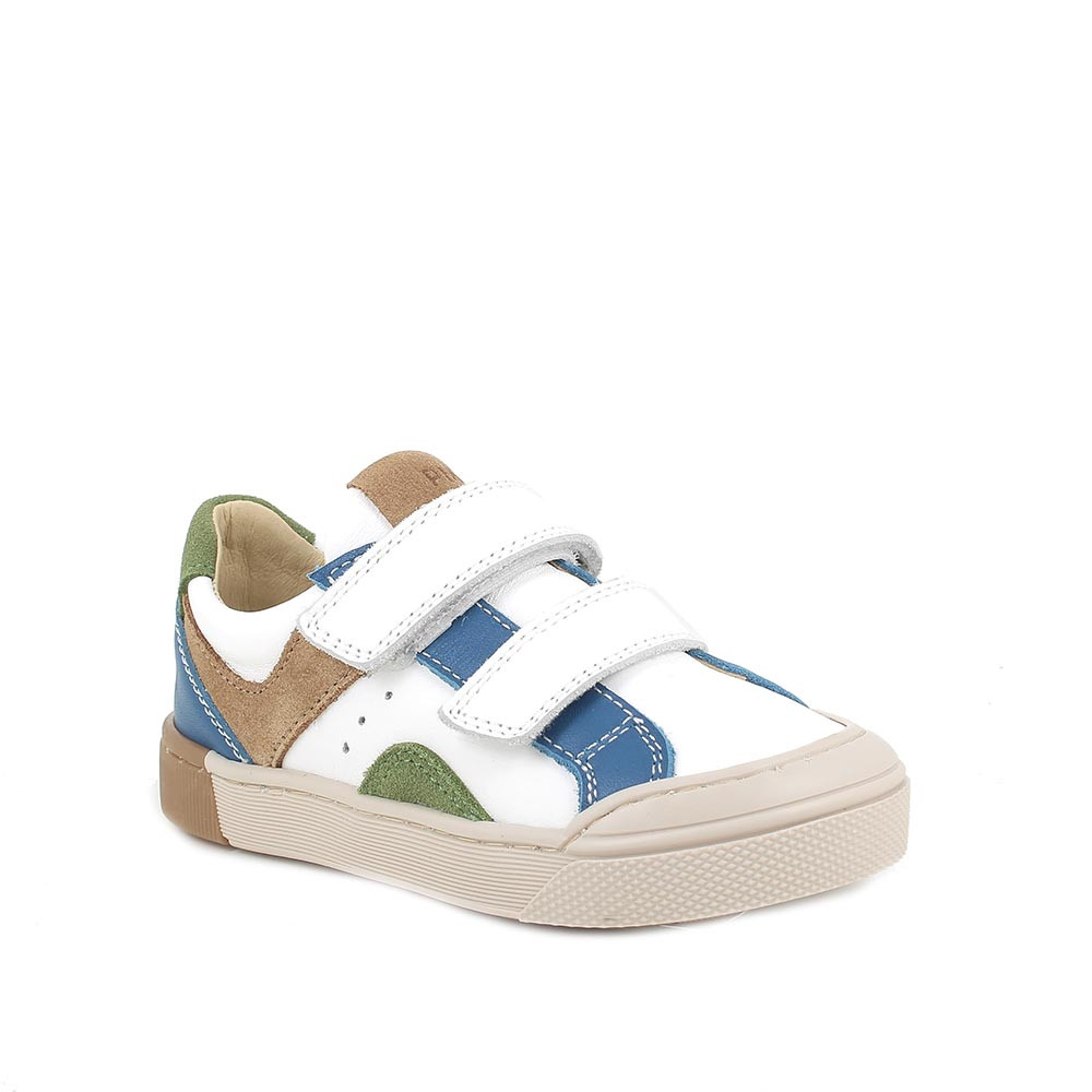 Sneakers da bambino bianco e blu con strap
