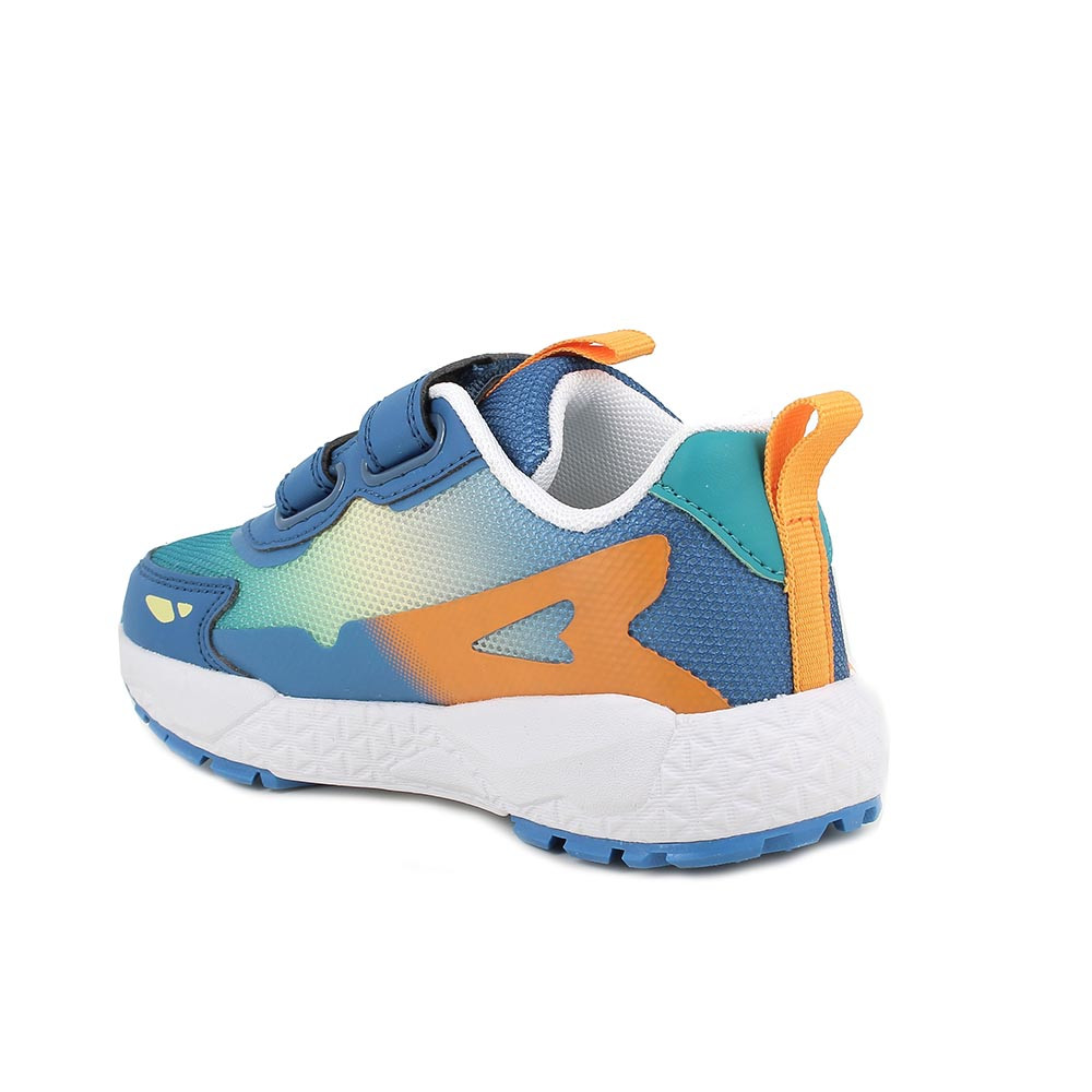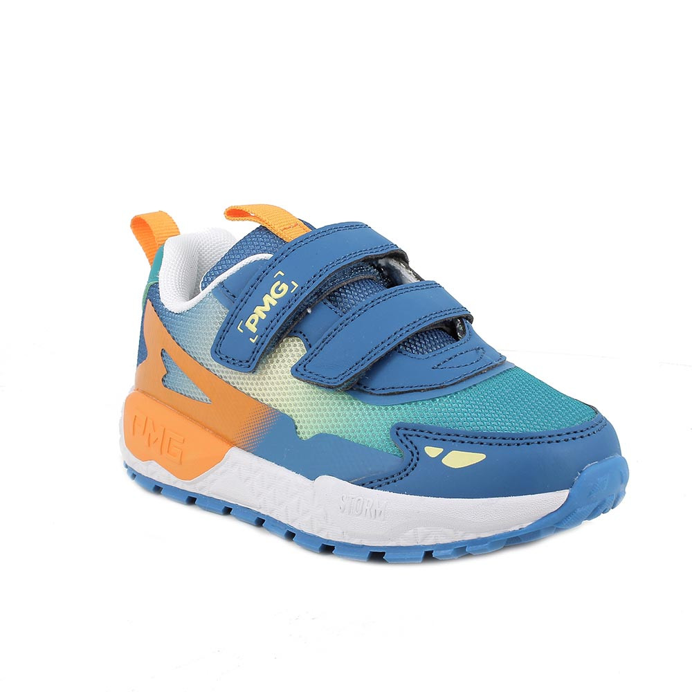 Sneakers da bambino blu e arancio con strap