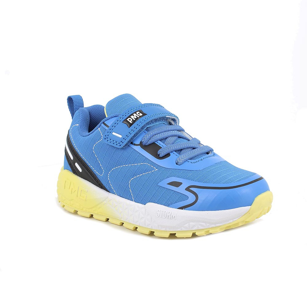 Sneakers da bambino celeste e giallo con strap