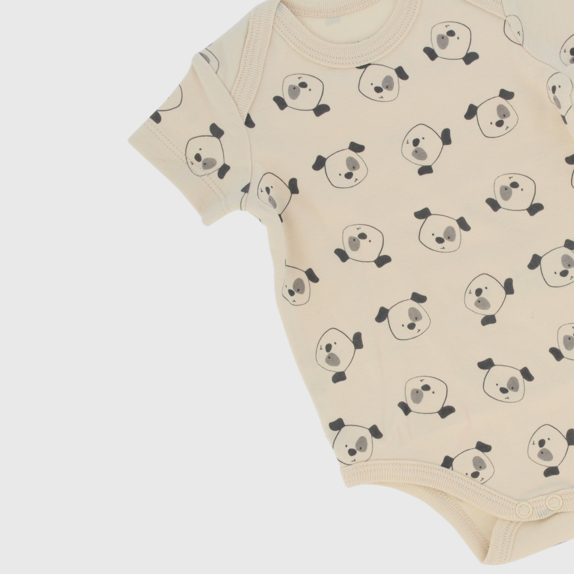 Body in caldo cotone con collo rotondo, a maniche corte. Chiusura con bottoni automatici sulla parte inferiore. Stampa all-over cane.