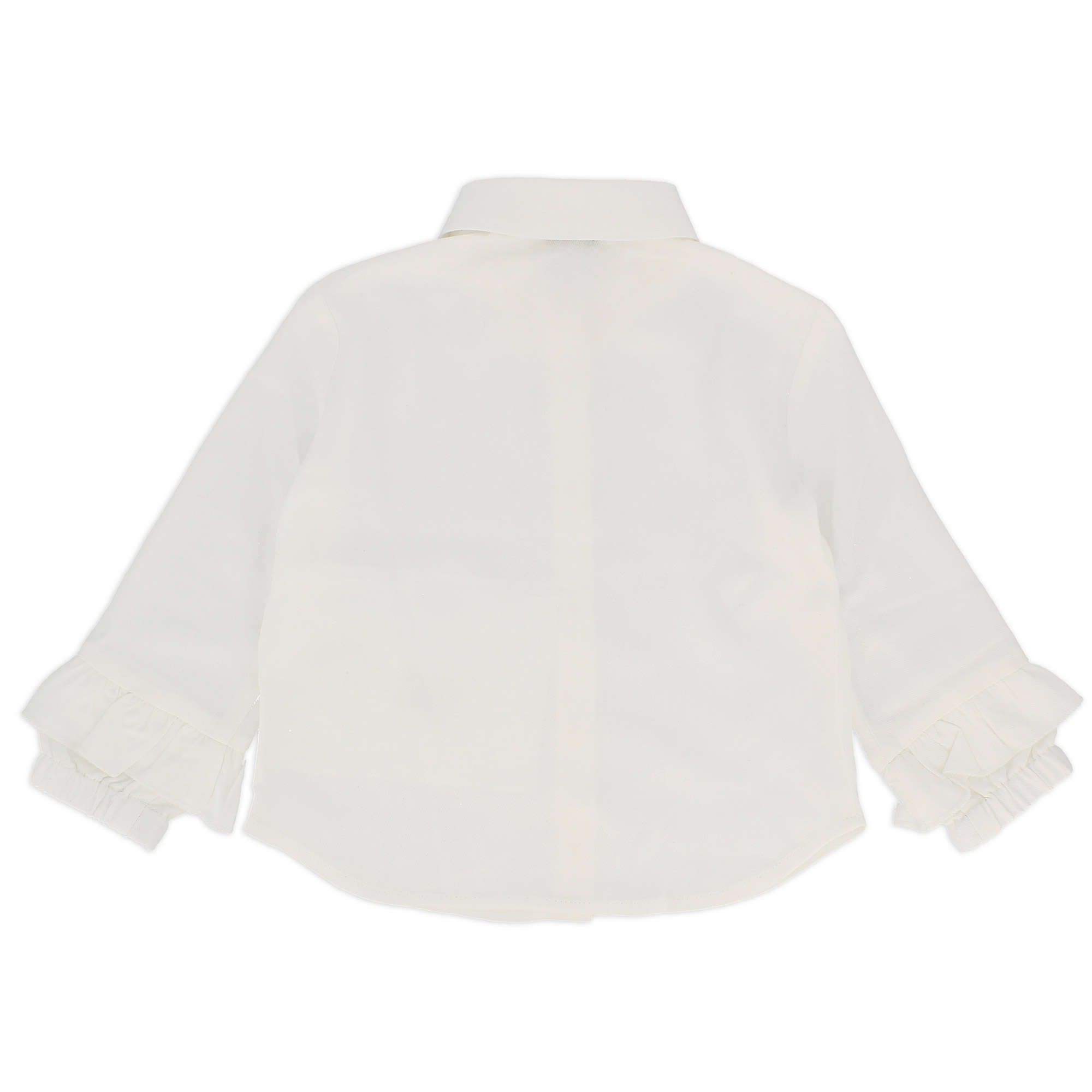 Camicia in viscosa a maniche lunghe. Chiusura con bottoncini sul davanti. Piccolo volant sul polsino, arricciato con elastico.