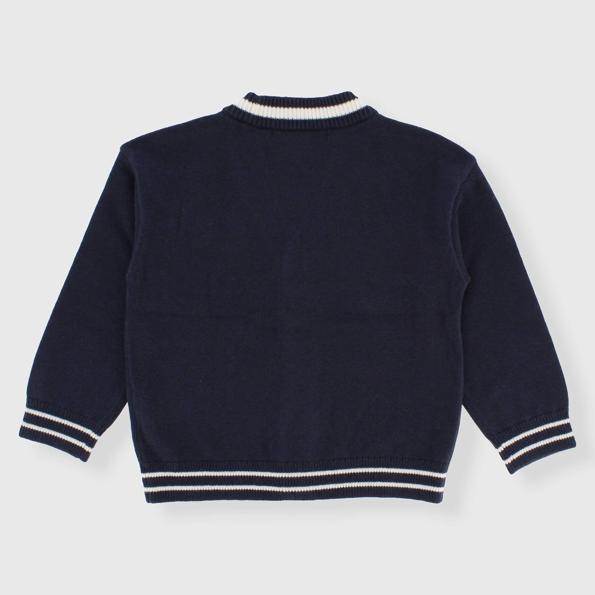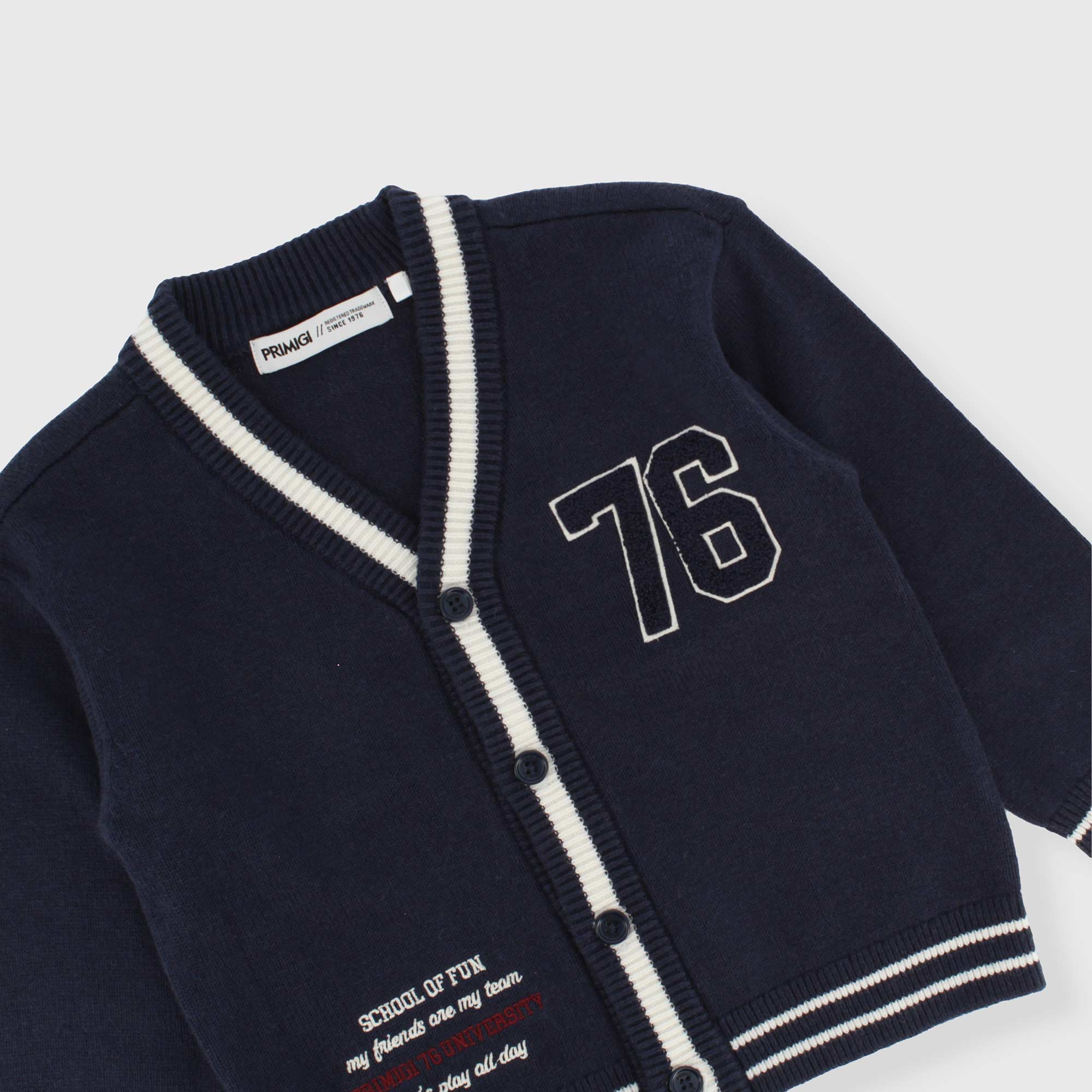 Cardigan in morbida maglia con scollo a V, a maniche lunghe. Chiusura con bottoni sul davanti. Ricamo punto spugna sul petto.