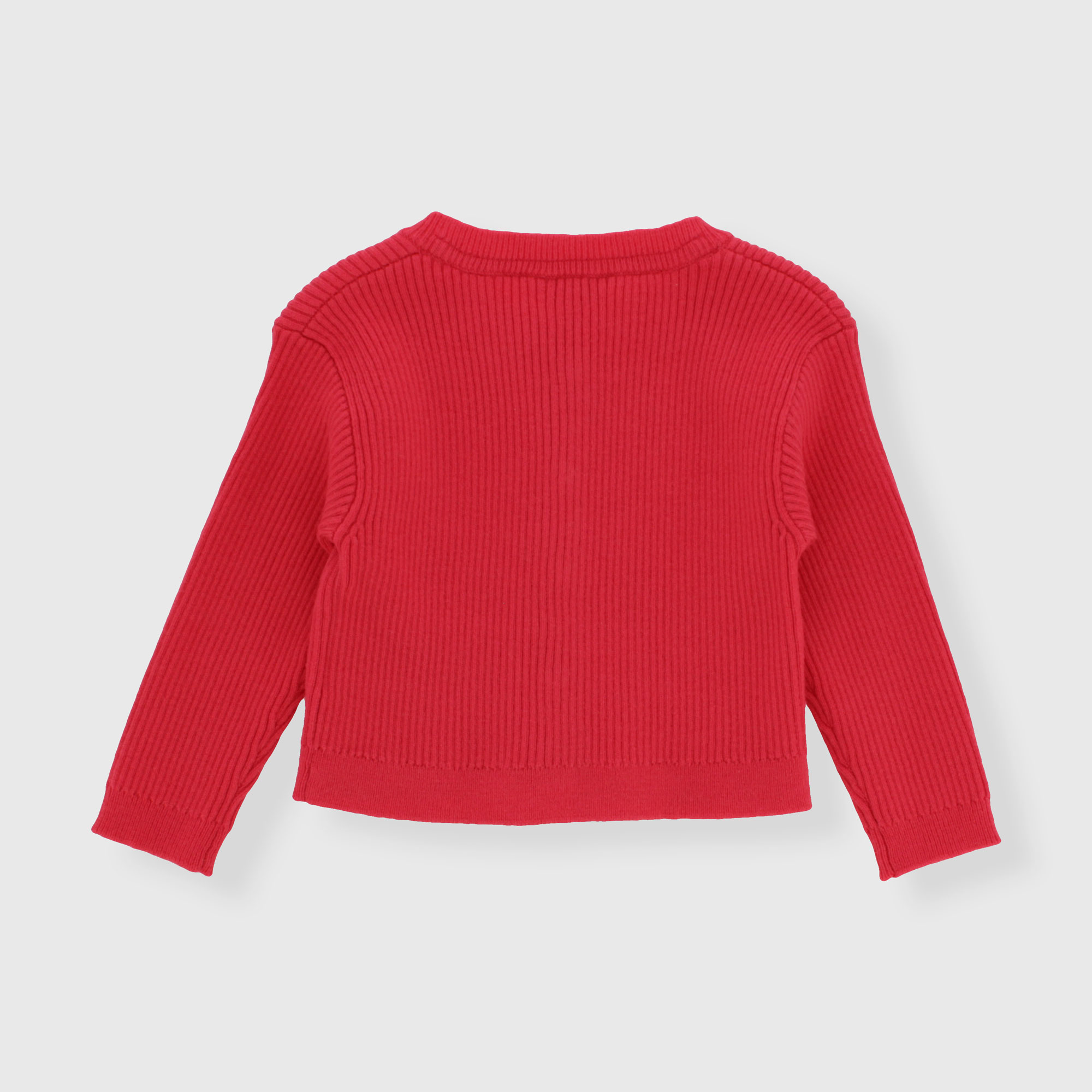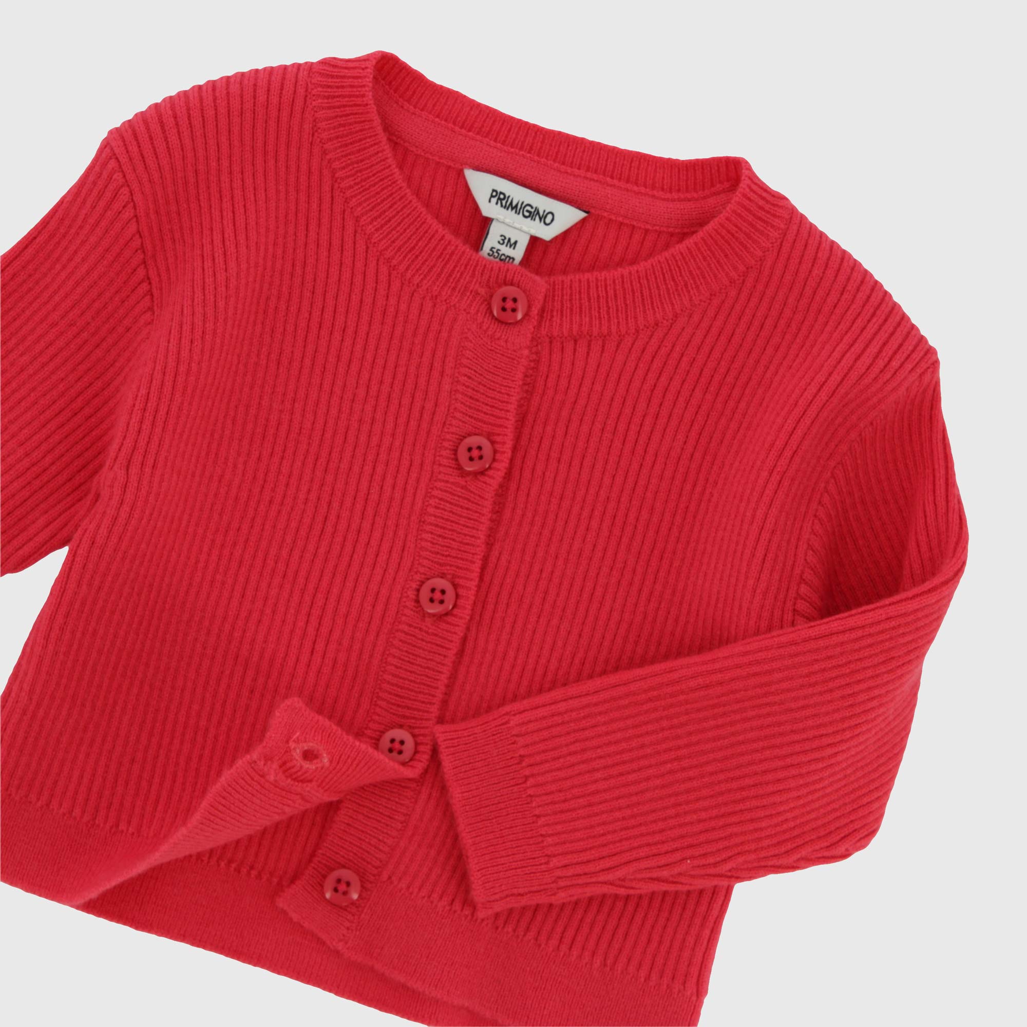 Cardigan in morbida maglia a maniche lunghe. Chiusura frontale con bottoni. Lavorazione a costine.