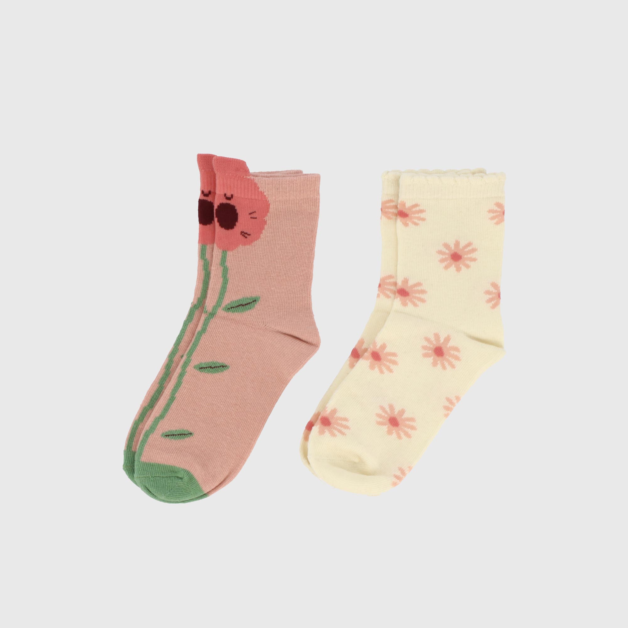 Confezione composta da due paia di calzini con motivo fiori. Bordi elasticizzati.
