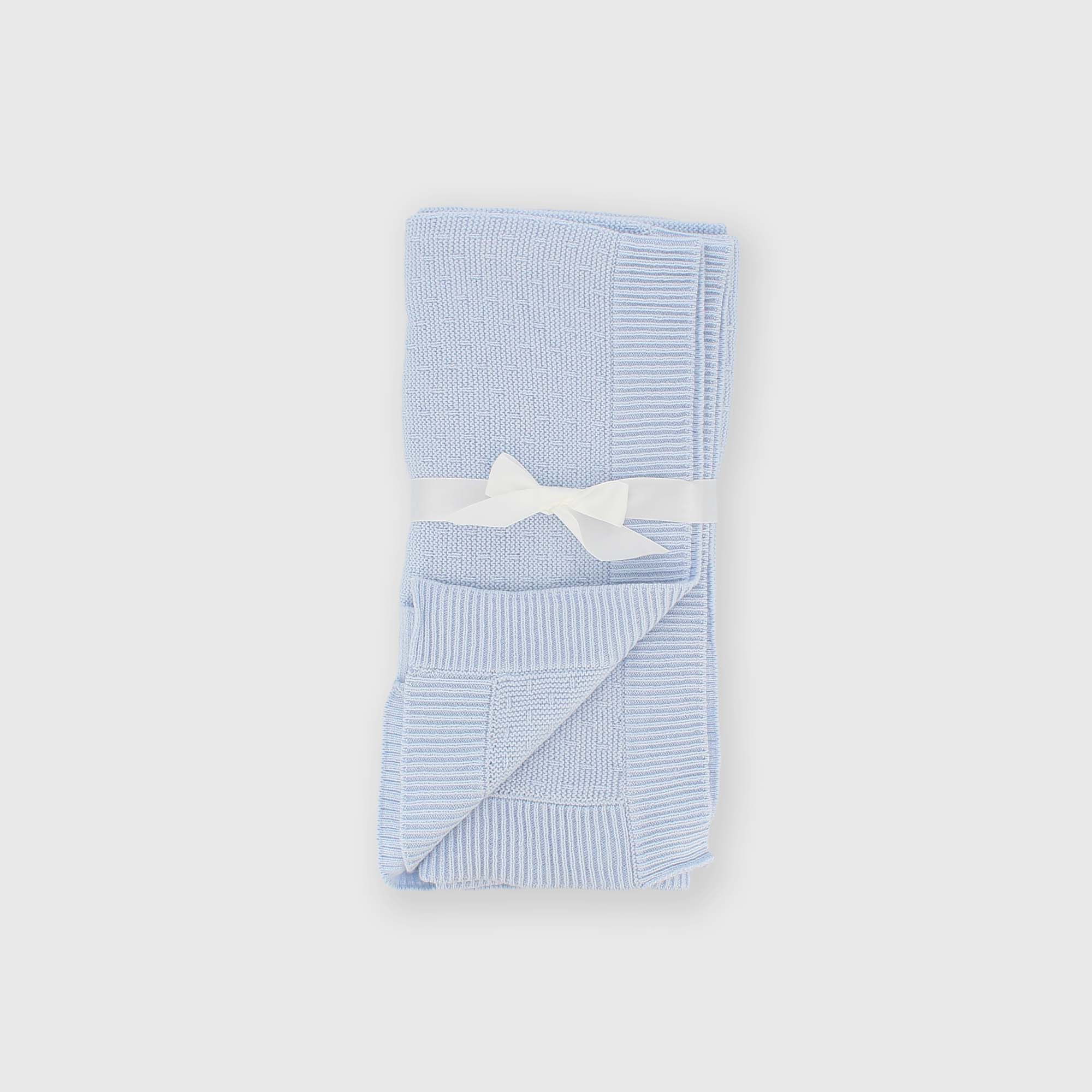 Copertina da neonato in morbida maglia con profili a costine.