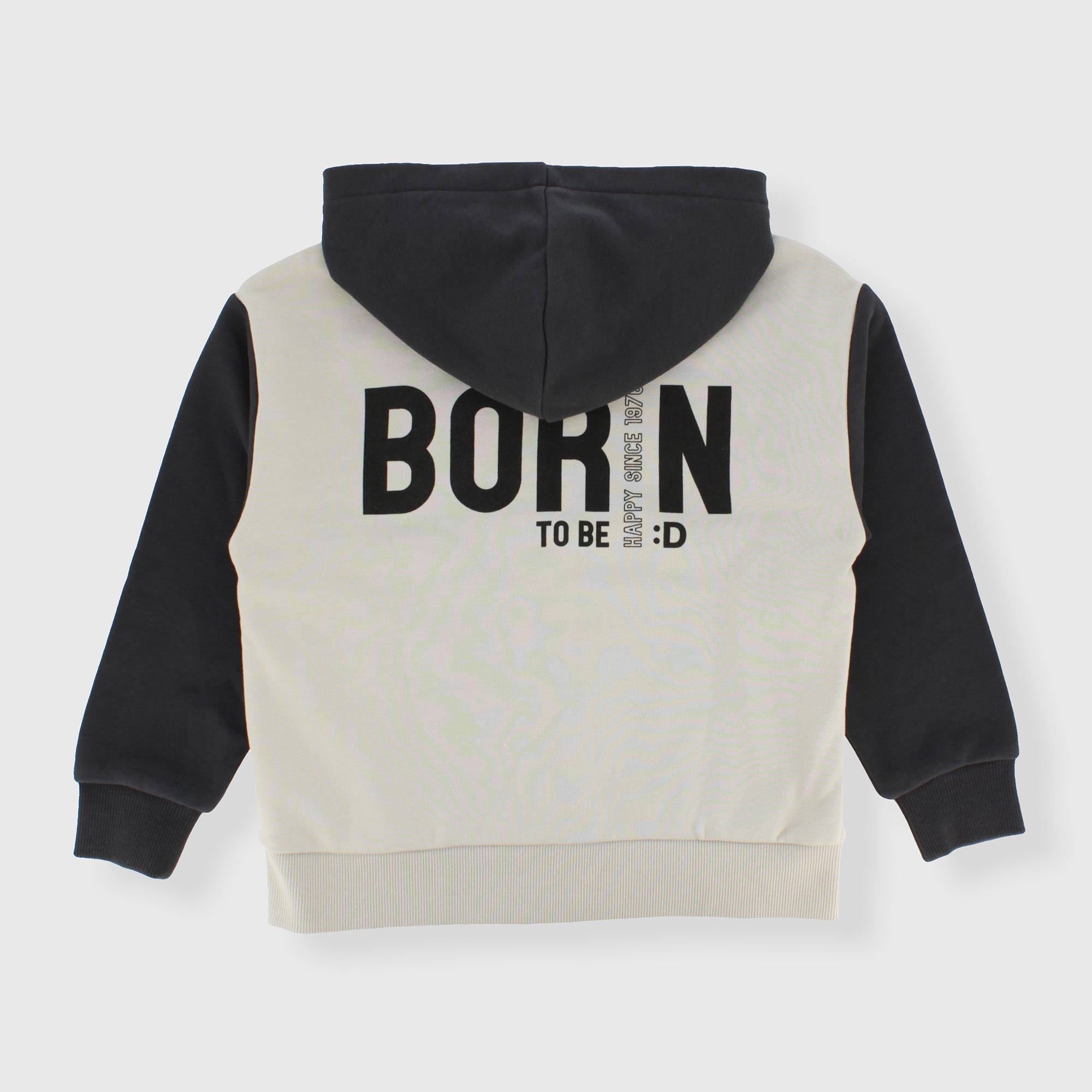 Felpa aperta con cappuccio, a maniche lunghe. Chiusura con zip sul davanti. Tasca a marsupio. Stampe con scritte sul davanti e sul retro. Polsini e fondi in costina.