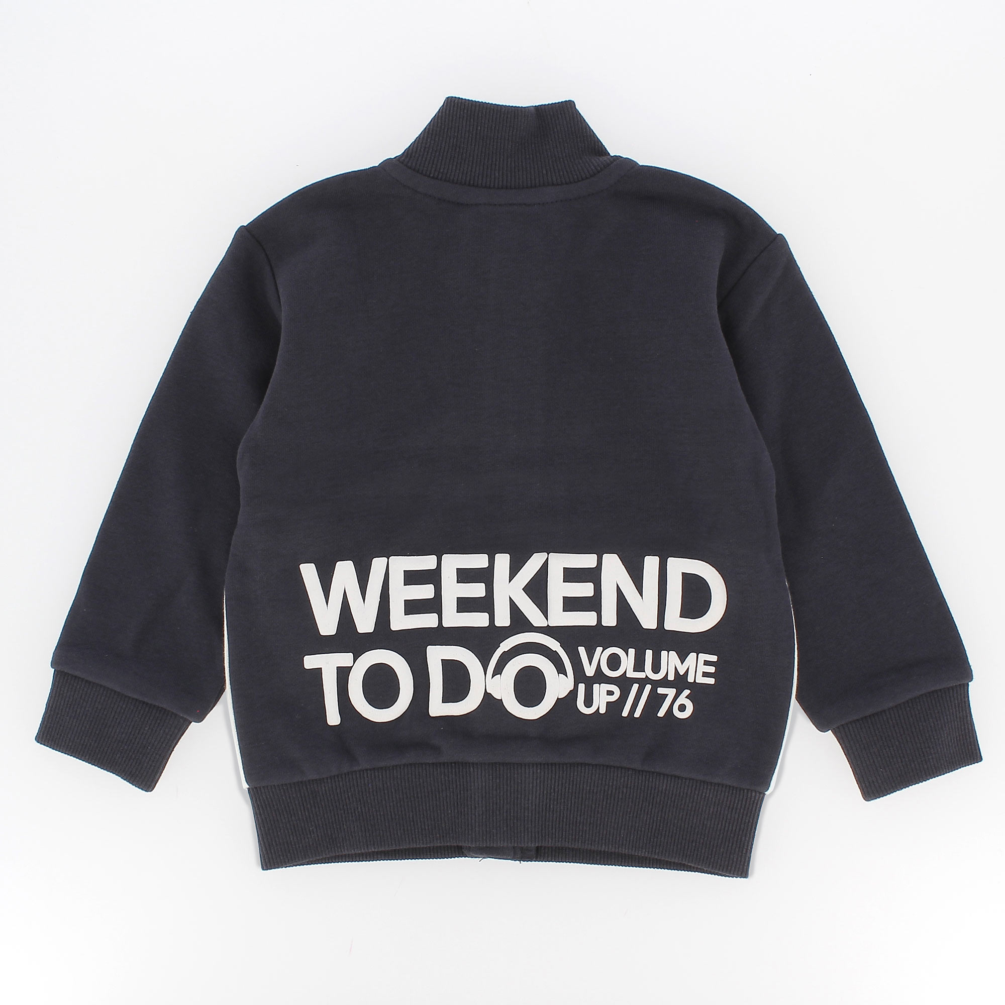 Felpa aperta a maniche lunghe. Chiusura con zip sul davanti. Tasche laterali. Stampe con scritte effetto gommato sul davanti e sul retro.