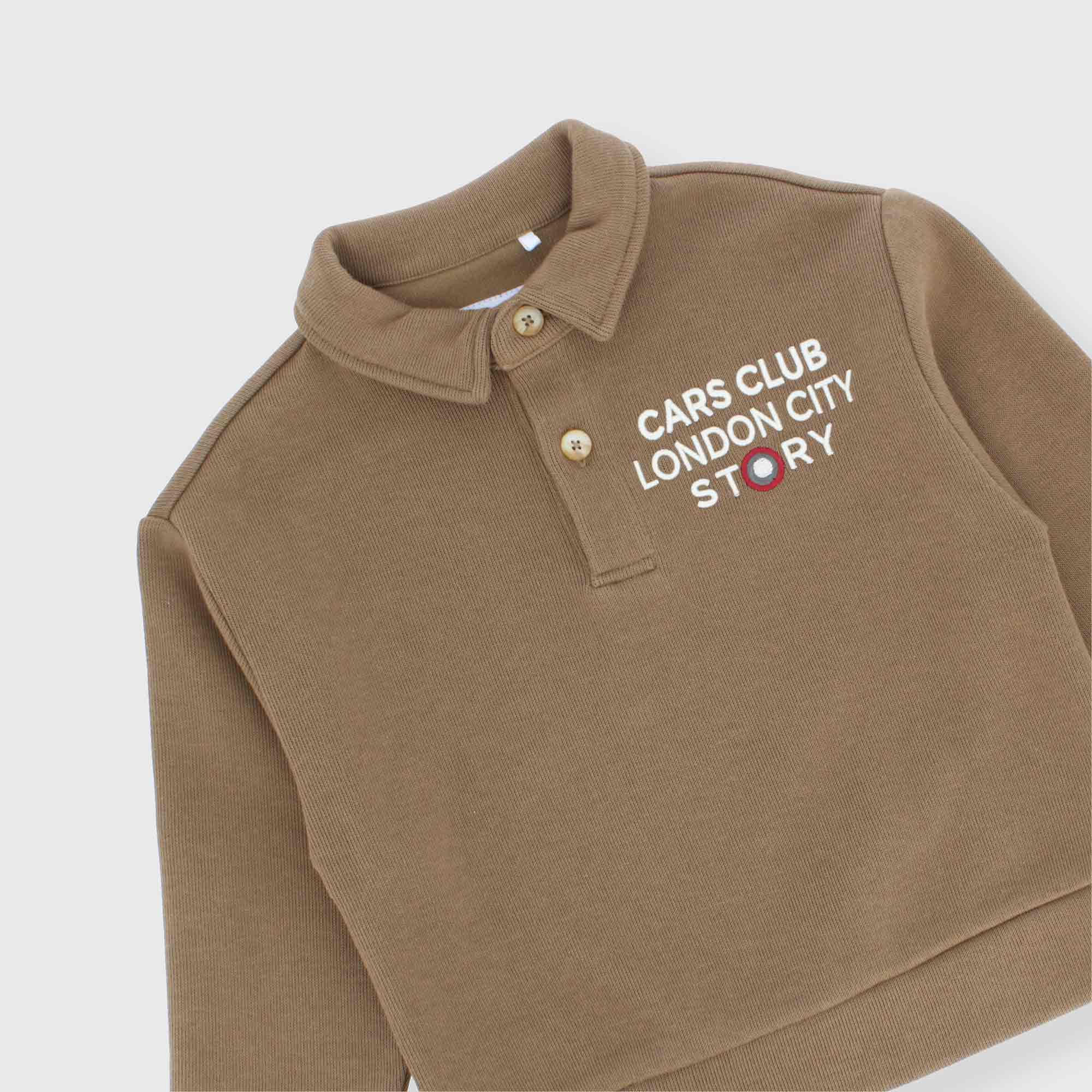 Felpa a polo in tessuto testurizzato, a maniche lunghe. Bottoncini sullo scollo e scritta ricamata sul petto.