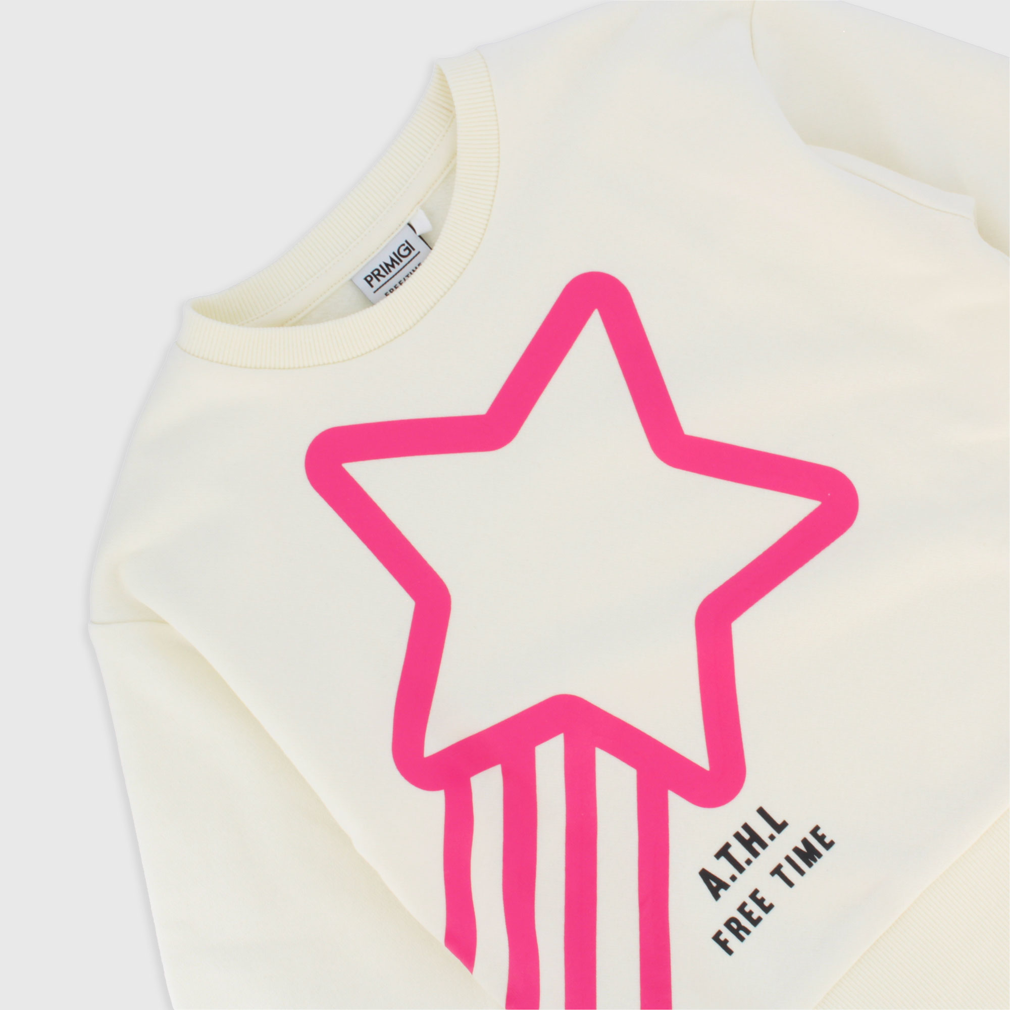 Felpa girocollo, a maniche lunghe. Stampa sul davanti. Collo, polsini e fondo in costina.
