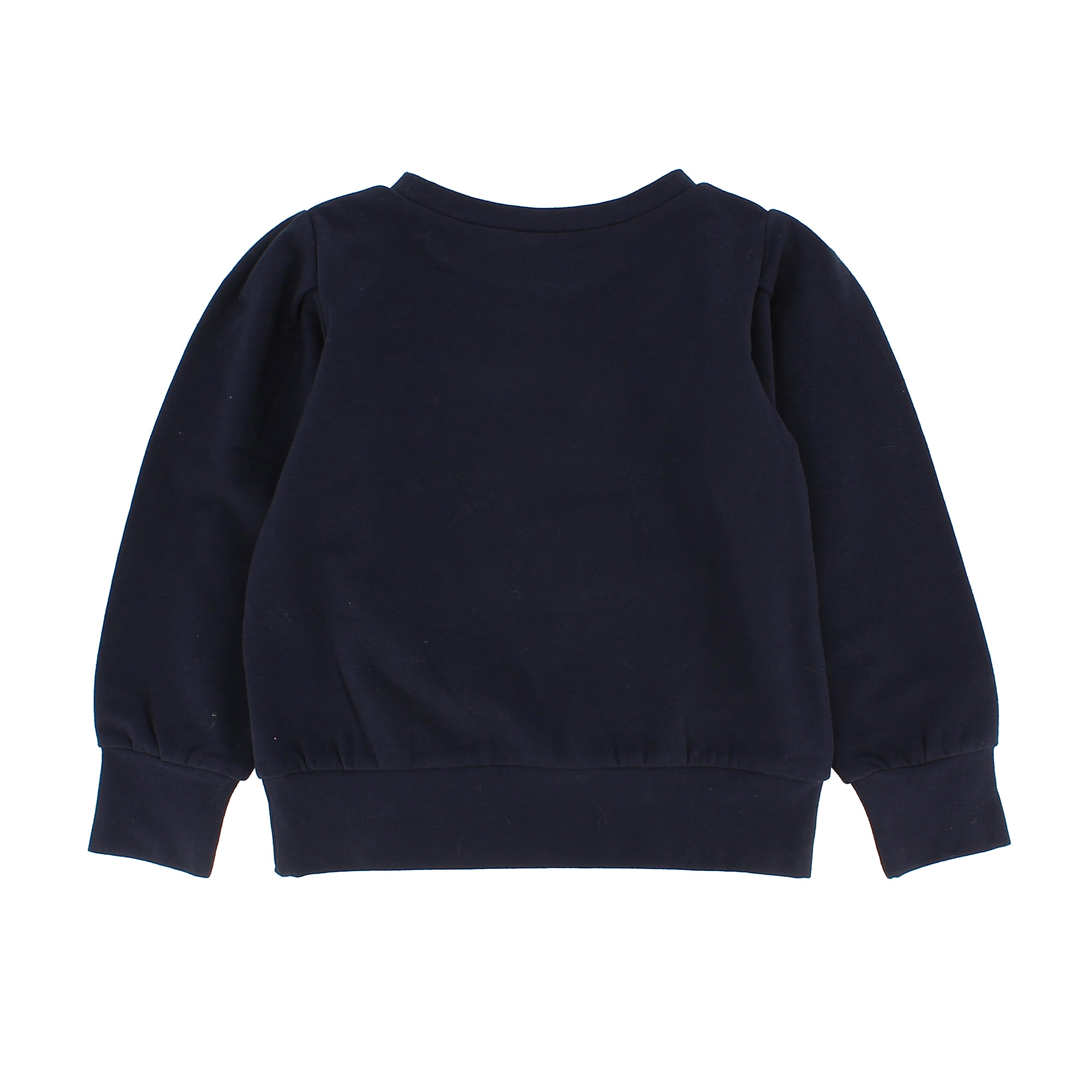 Felpa girocollo con maniche lunghe a palloncino. Ricamo in paillettes sul davanti.