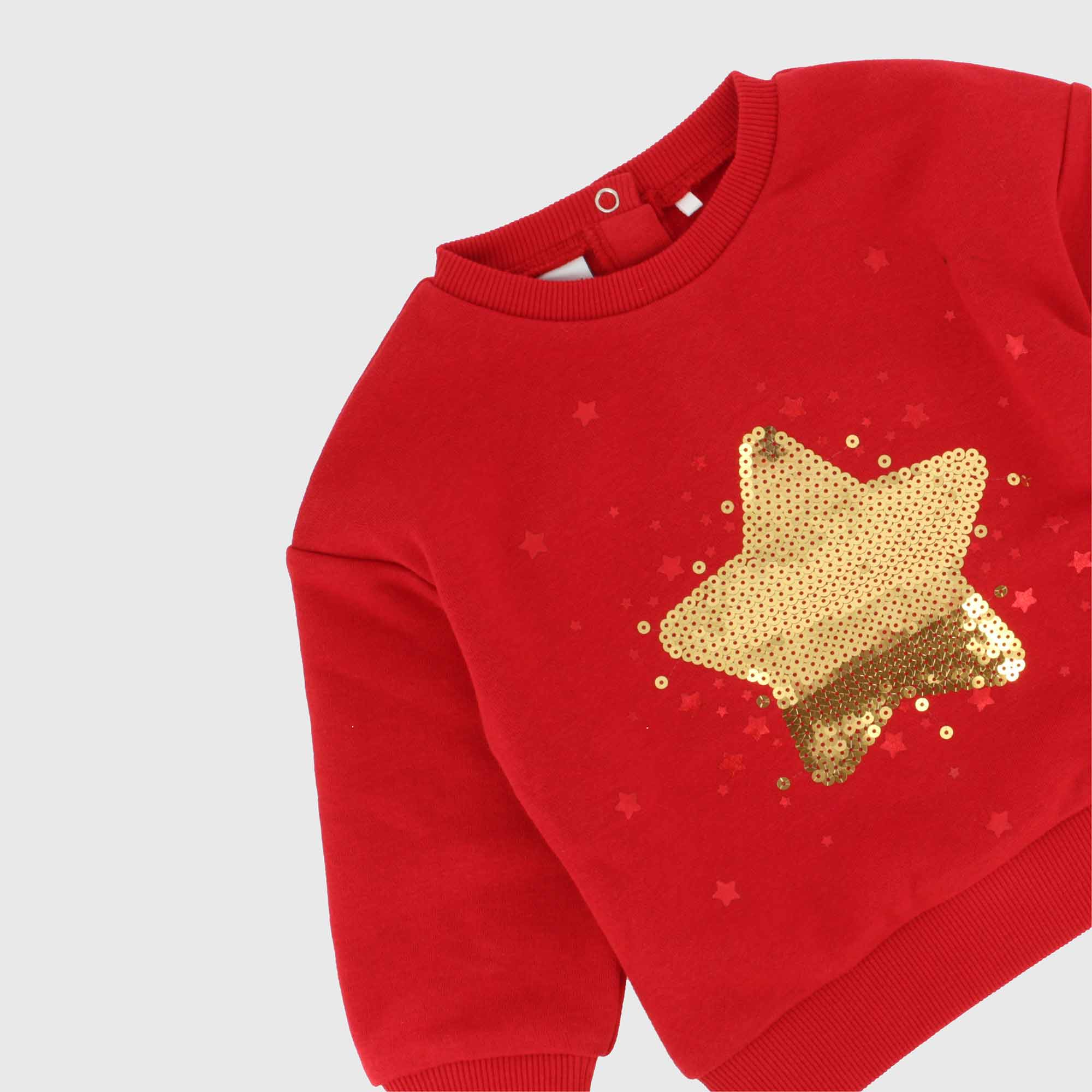 Felpa girocollo, a maniche lunghe. Chiusura con bottoncini automatici sul retro. Stella in paillettes double-face e stelline stampate.
