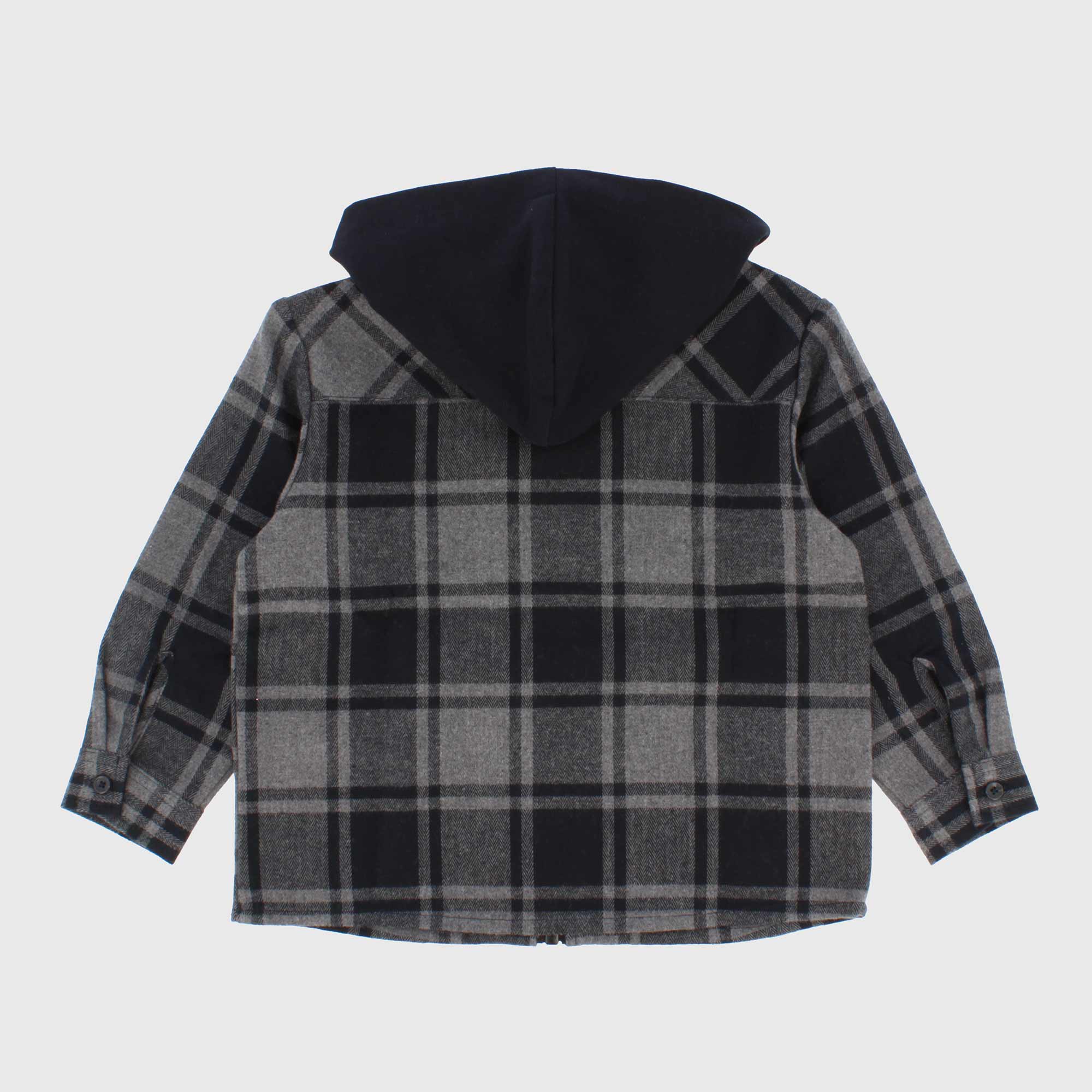 Camicia in flanella check con cappuccio , a maniche lunghe. Chiusura con zip sul davanti. Taschino sul petto.