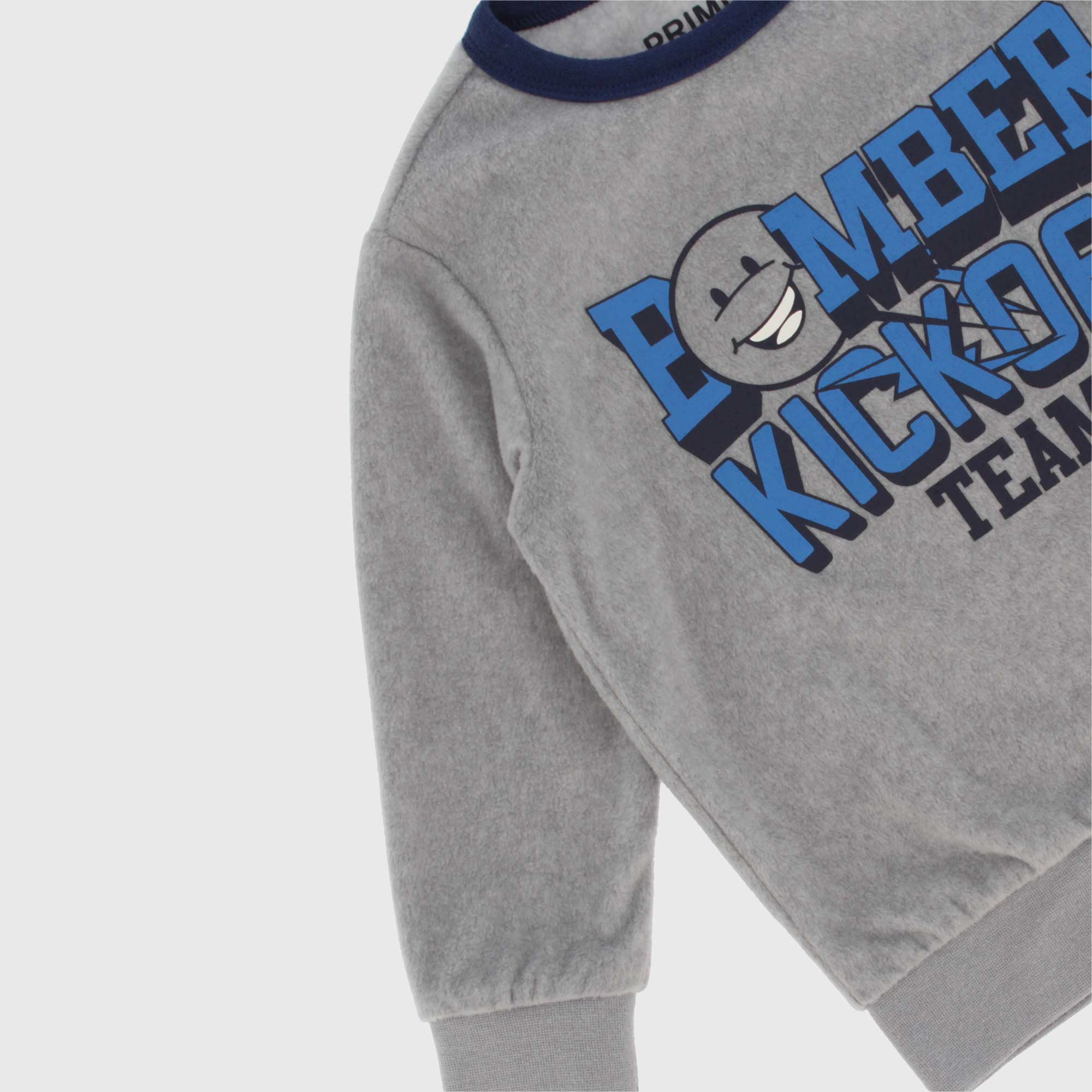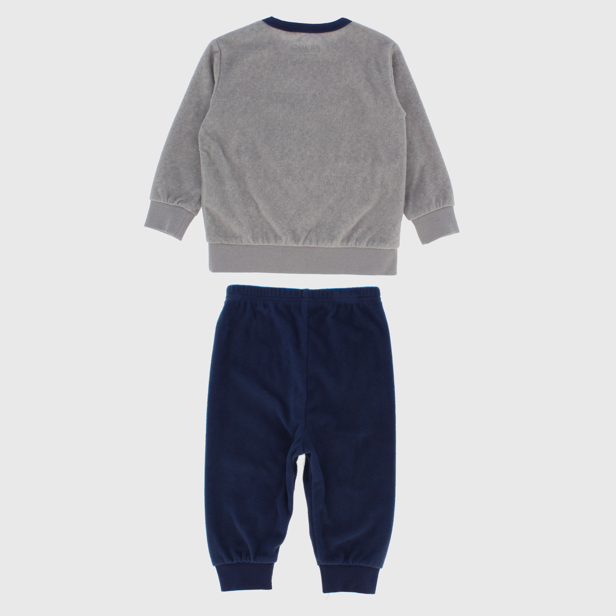 Completo pigiama in pile. Maglia girocollo, a maniche lunghe. Chiusura con bottoni automatici sulla spalla. Stampa sul davanti. Pantalone con vita elasticizzata e fondo in costina.