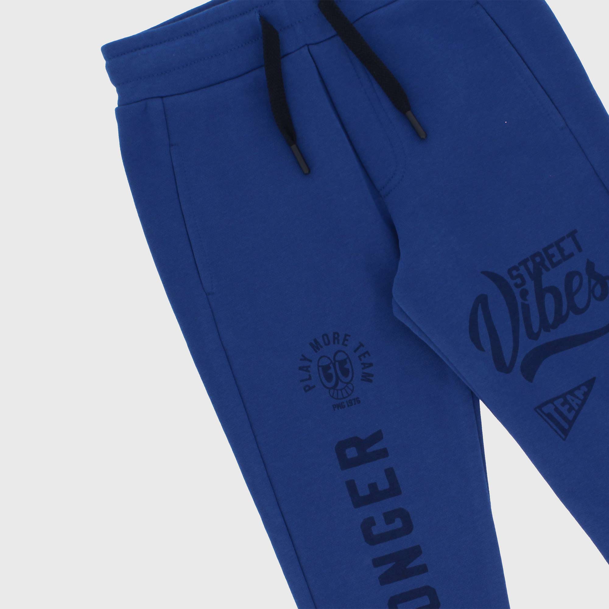 Pantalone in felpa con vita elasticizzata e lacci sul davanti. Stampa all-over. Tasche a filetto. Fondo in costina.