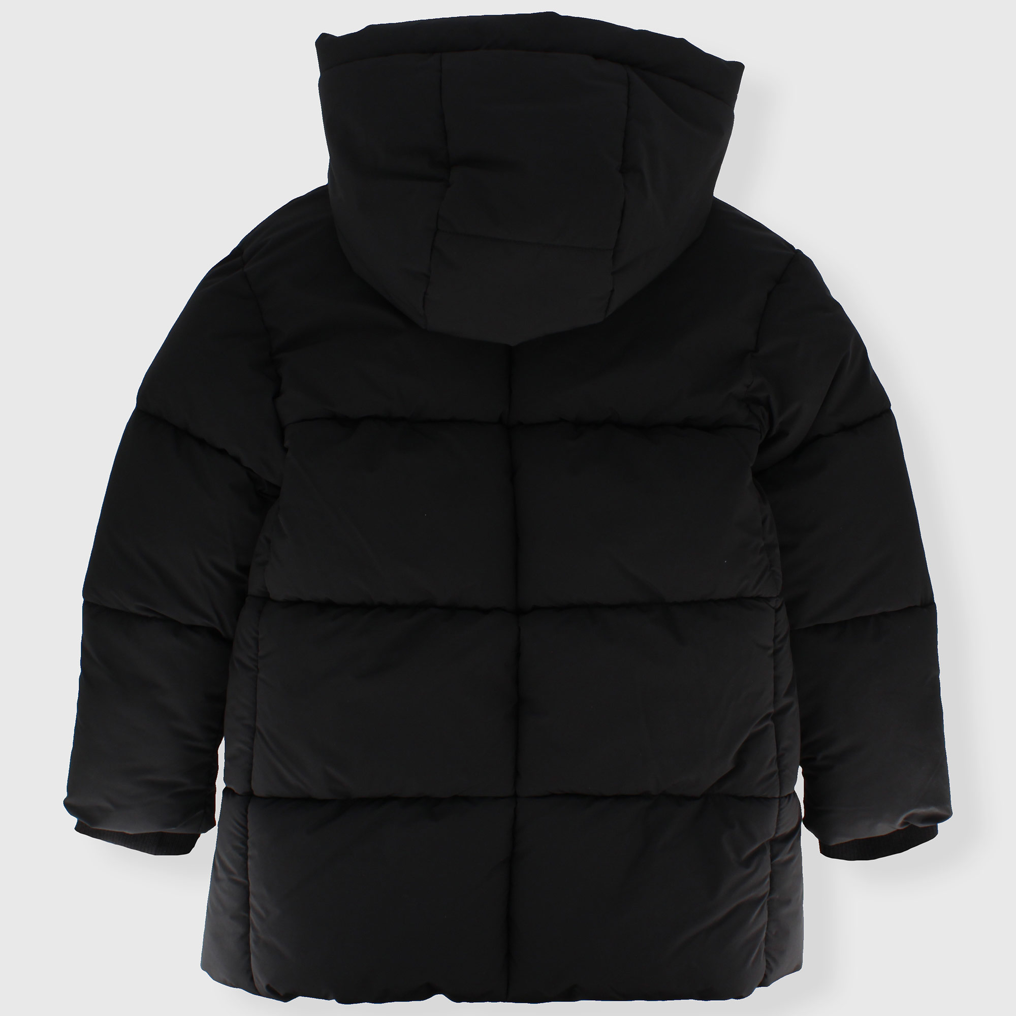 Giubbino in nylon, con cappuccio, a maniche lunghe. Chiusura con zip gommata sul davanti. Tasche a filetto sul torace. Polsini in costina. Fodera interna in pile.