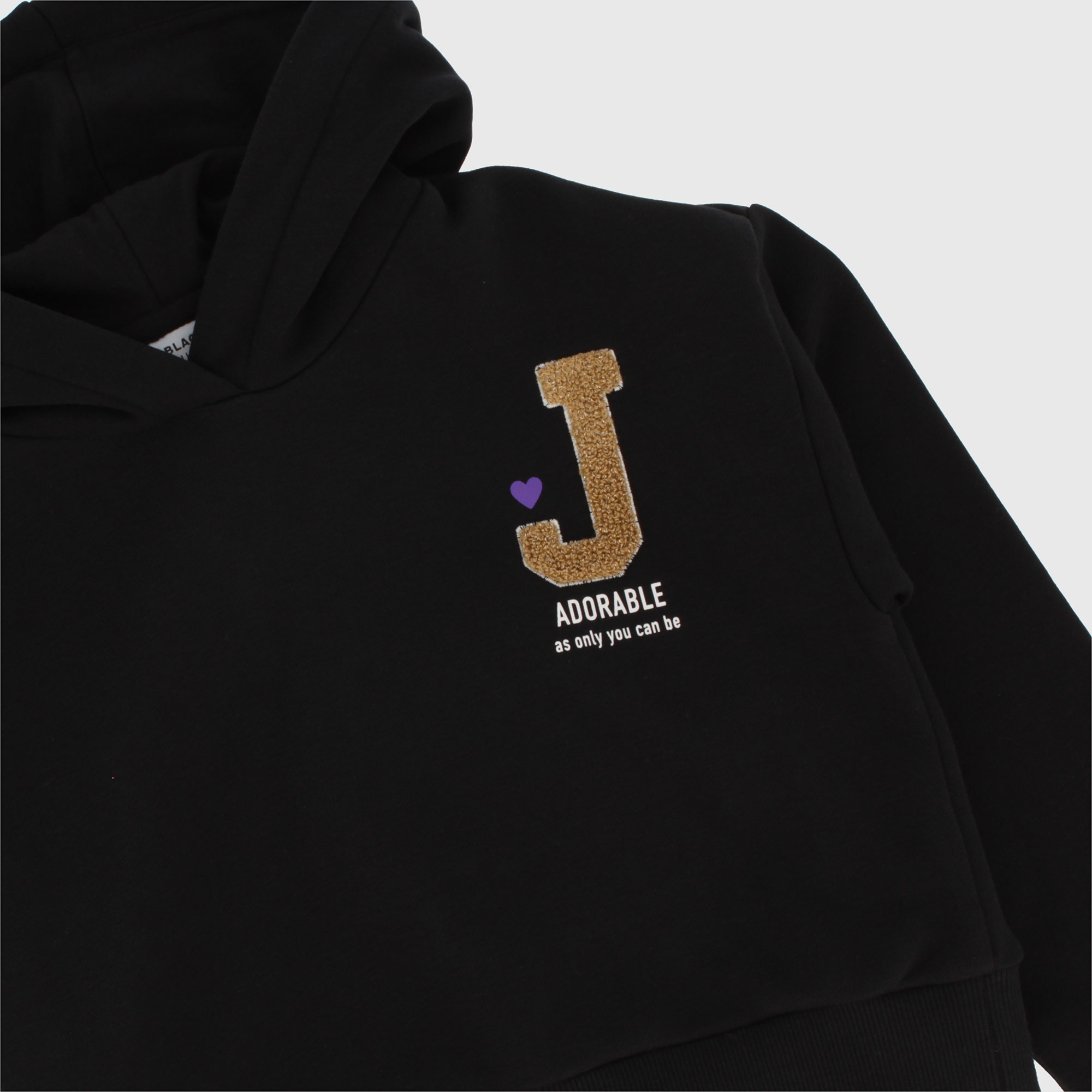Felpa con cappuccio a maniche lunghe. Stampa e ricamo effetto spugna sul davanti. Inserto in tessuto camicia sul fondo.