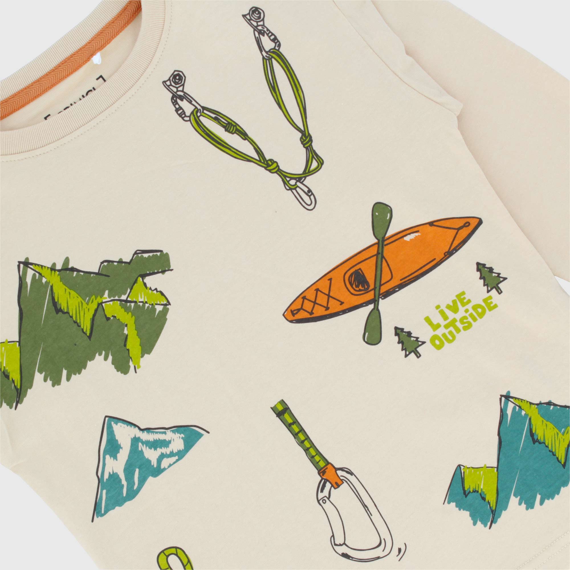 Maglietta in jersey manopesca, girocollo, a maniche lunghe. Stampe sul davanti. Collo e polsini in costina.