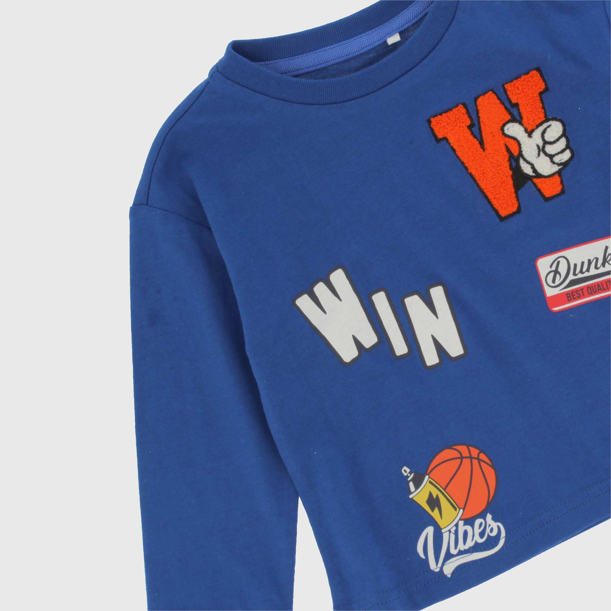 Maglietta in jersey, girocollo, a maniche lunghe. Chiusura con bottoni automatici sulla spalla. Stampa con dettagli effetto spugna sul davanti. Collo e polsini in costina.
