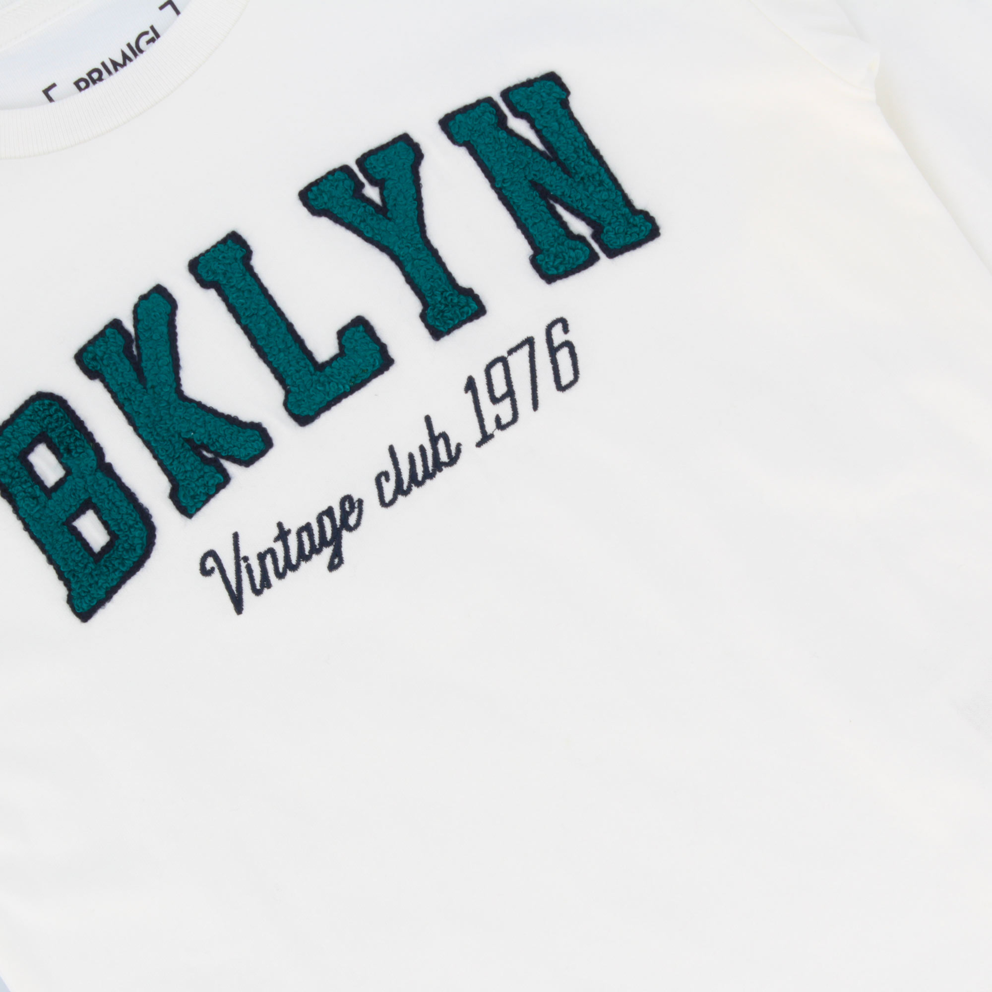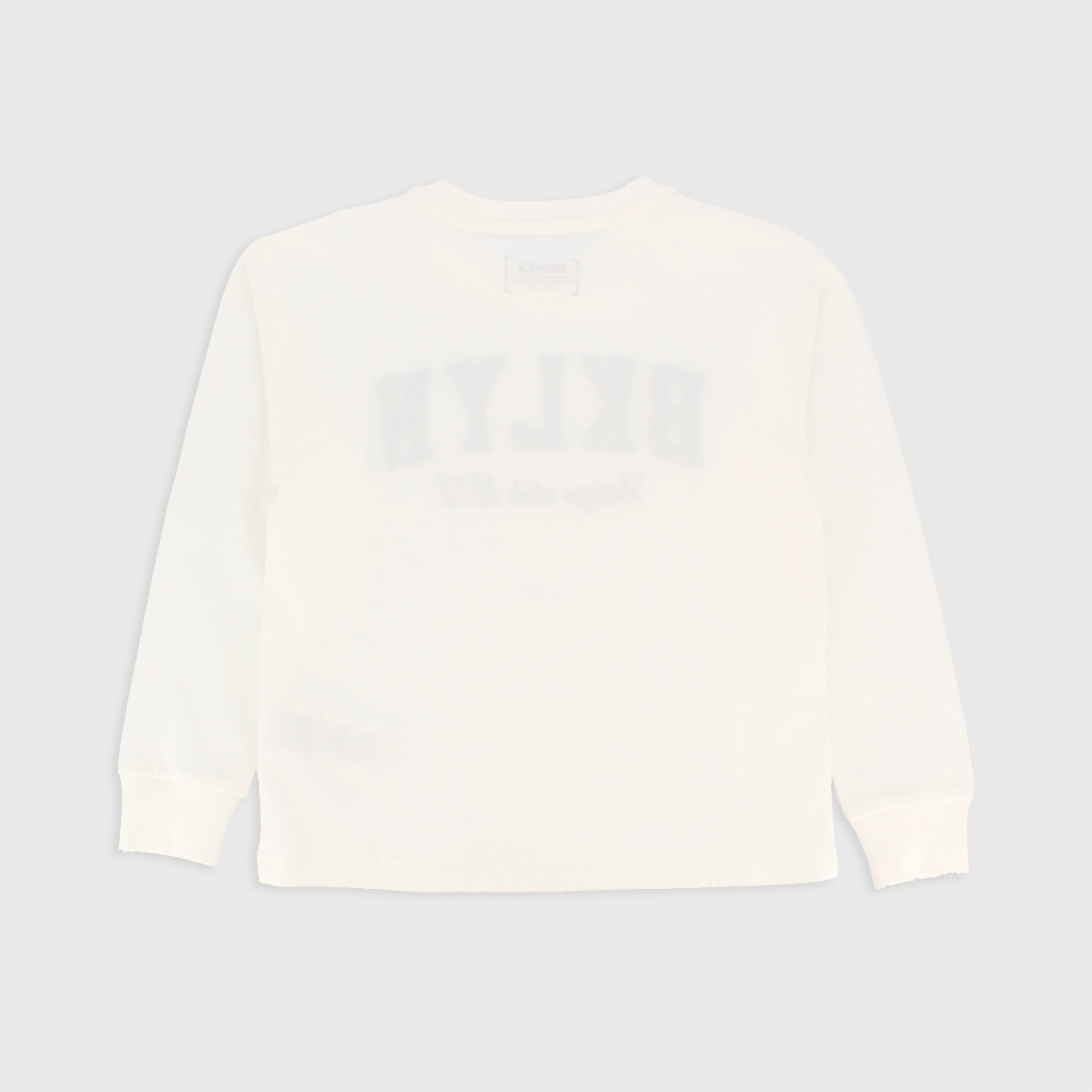 Maglietta in jersey, girocollo, a maniche lunghe. Stampa con scritte e dettagli effetto spugna sul davanti. Collo e polsini in costina.