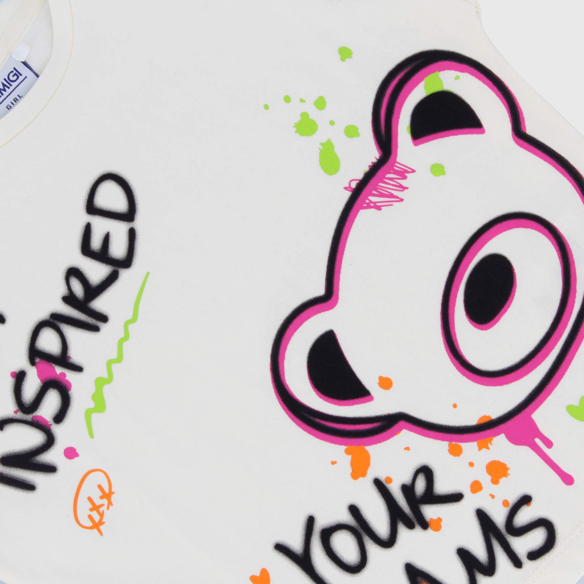 Maglietta in jersey, girocollo, a maniche lunghe. Stampa con dettagli flock sul davanti.