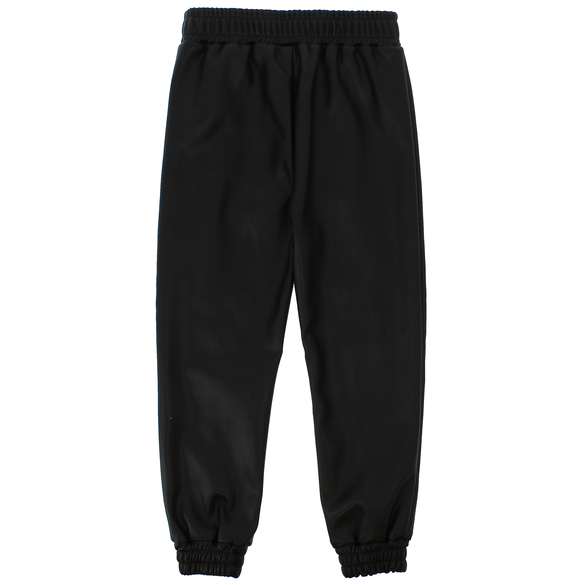 Pantalone jogger in ecopelle con vita elasticizzata. Fondo con elastico.
