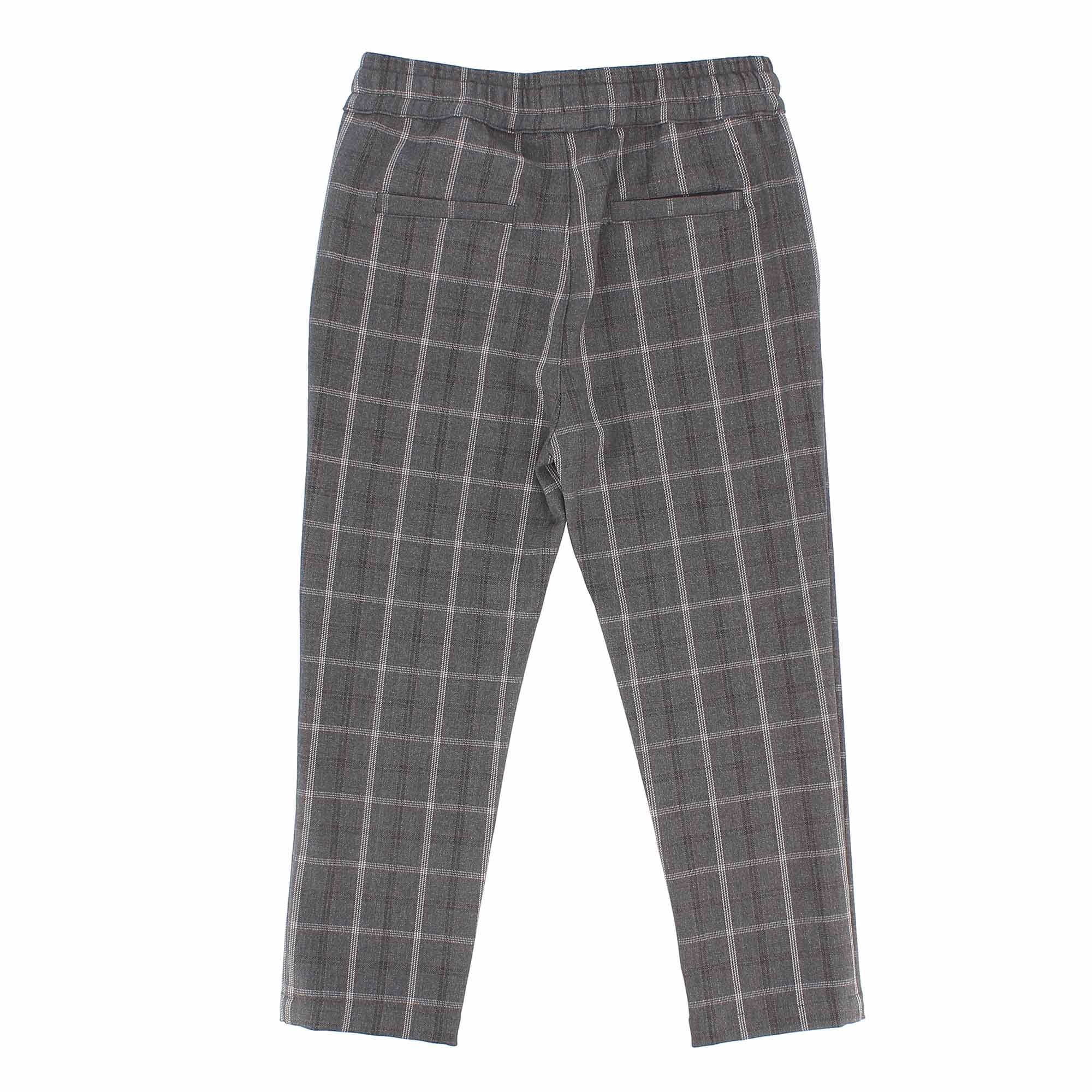Pantalone in tessuto check con vita elasticizzata e lacci sul davanti. Tasche laterali alla francese e tasche posteriori a filetto.