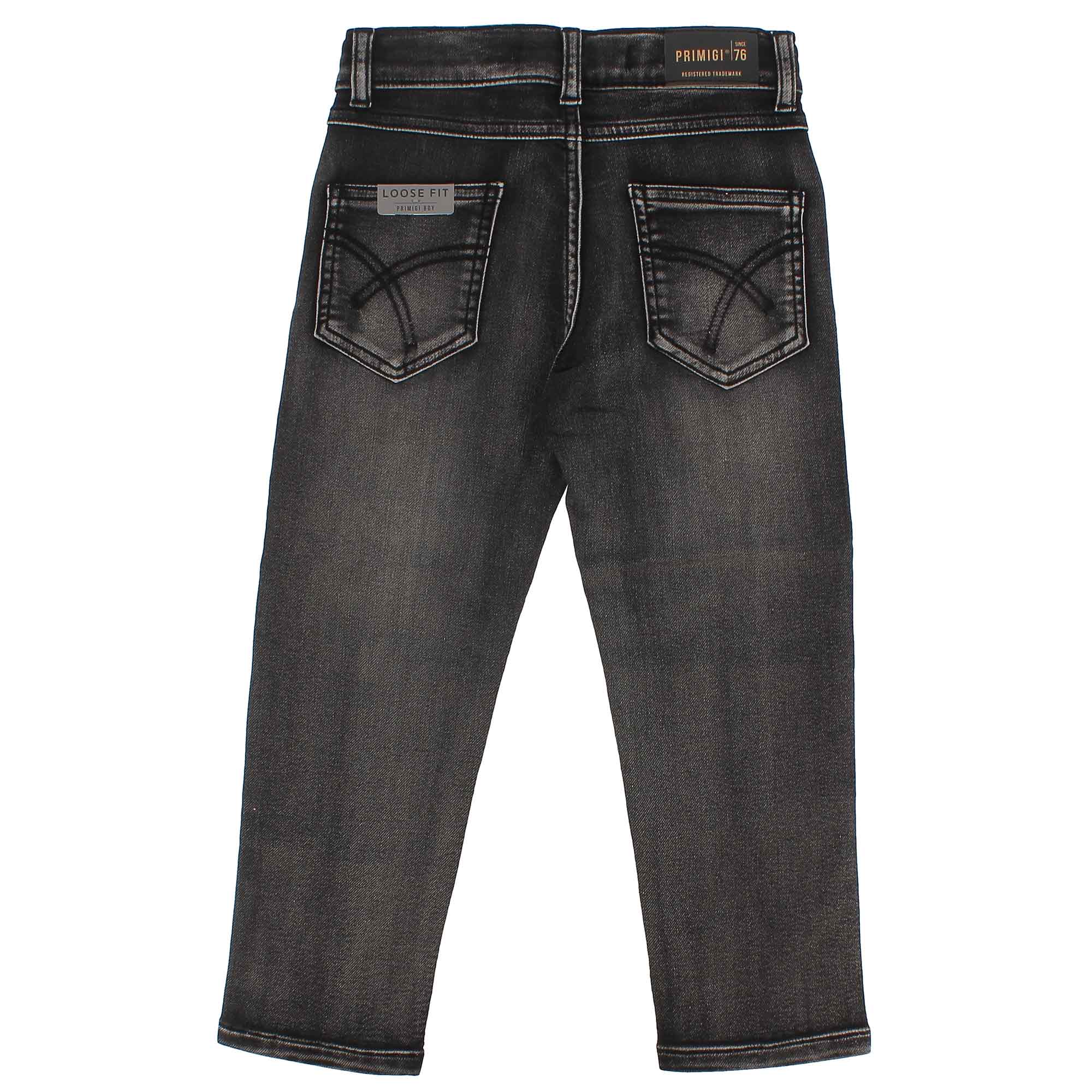 Pantalone loose fit, in jeans a maglia con vita regolabile all'interno. Chiusura con bottone in metallo e bottone automatico. Cinque tasche.