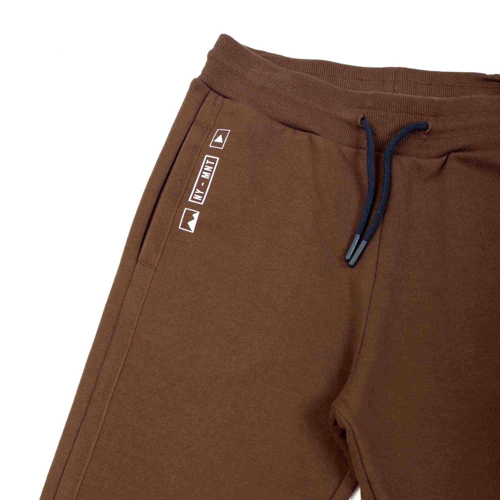 Pantalone in felpa con vita elasticizzata e lacci sul davanti. Tasche laterali a scomparsa e piccola stampa a contrasto.