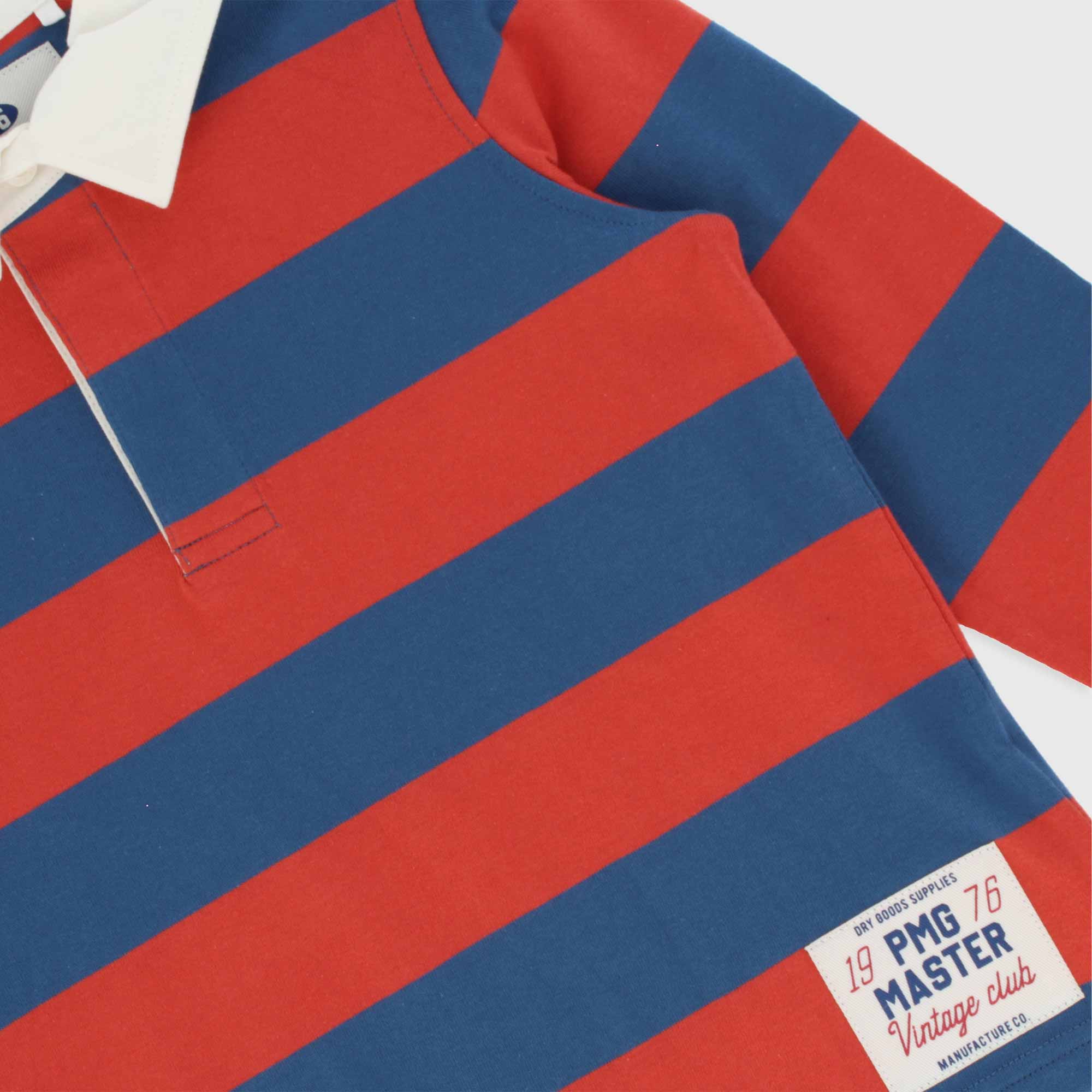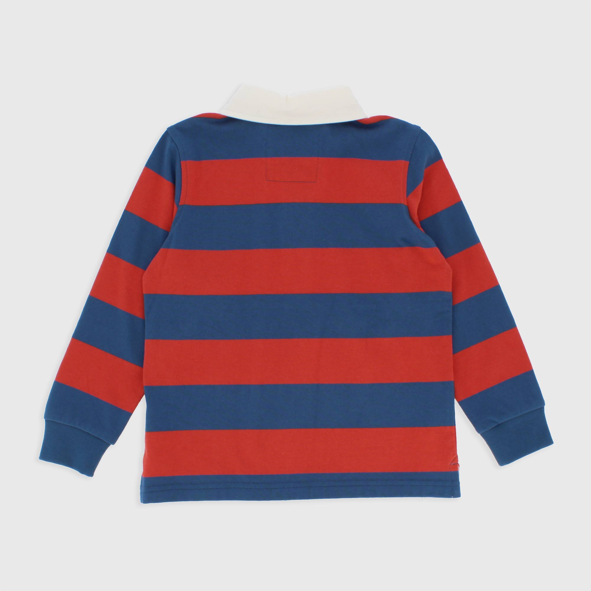 Polo riga tinto filo, a maniche lunghe. Chiusura con bottoni sul davanti. Patch applicato sul davanti. Polsini in costina e spacchetti laterali.
