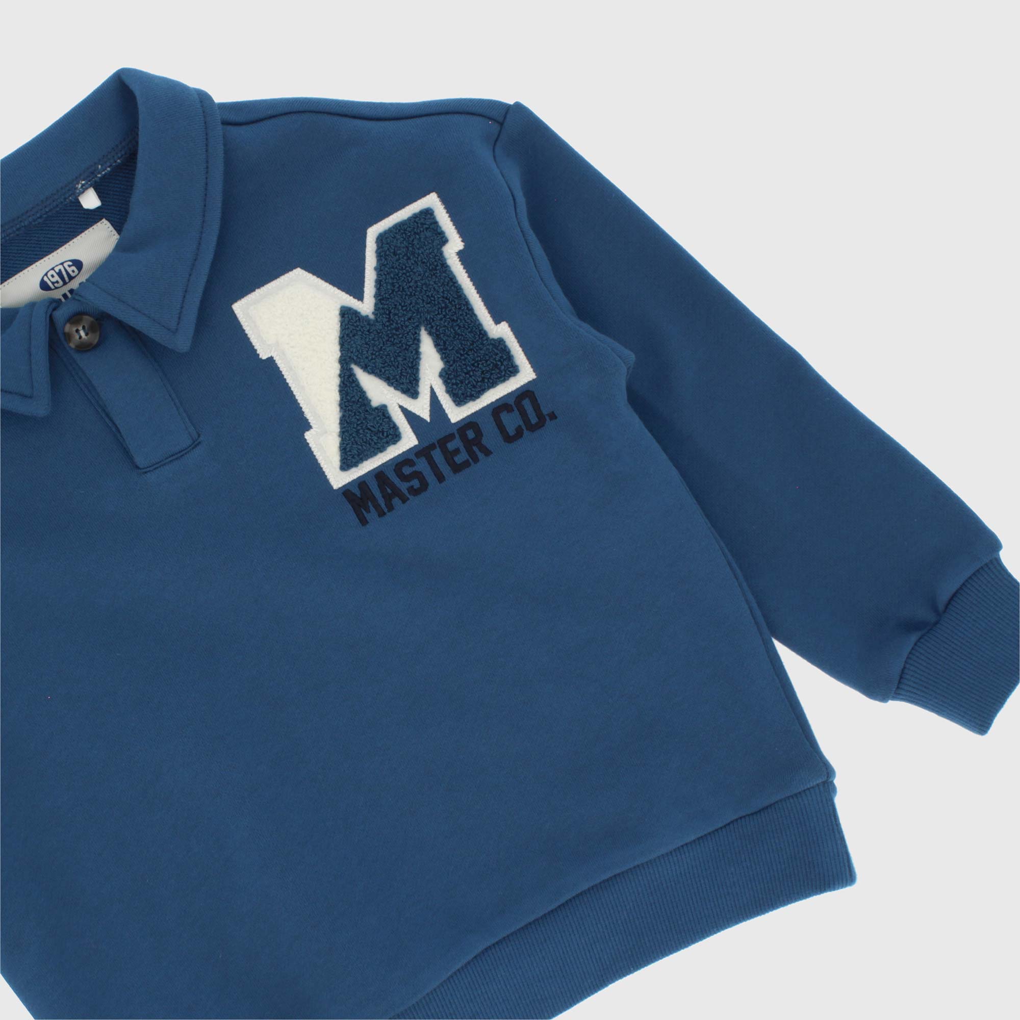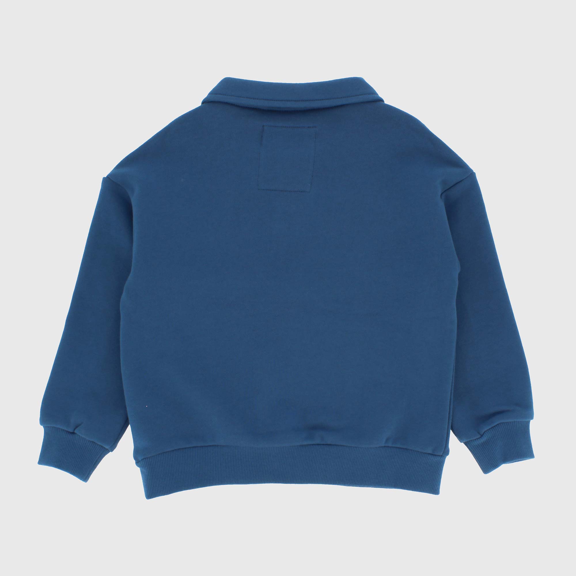 Felpa con colletto a polo, a maniche lunghe. Chiusura con bottone frontale. Patch effetto spugna sul davanti. Polsini e fondo in costina.