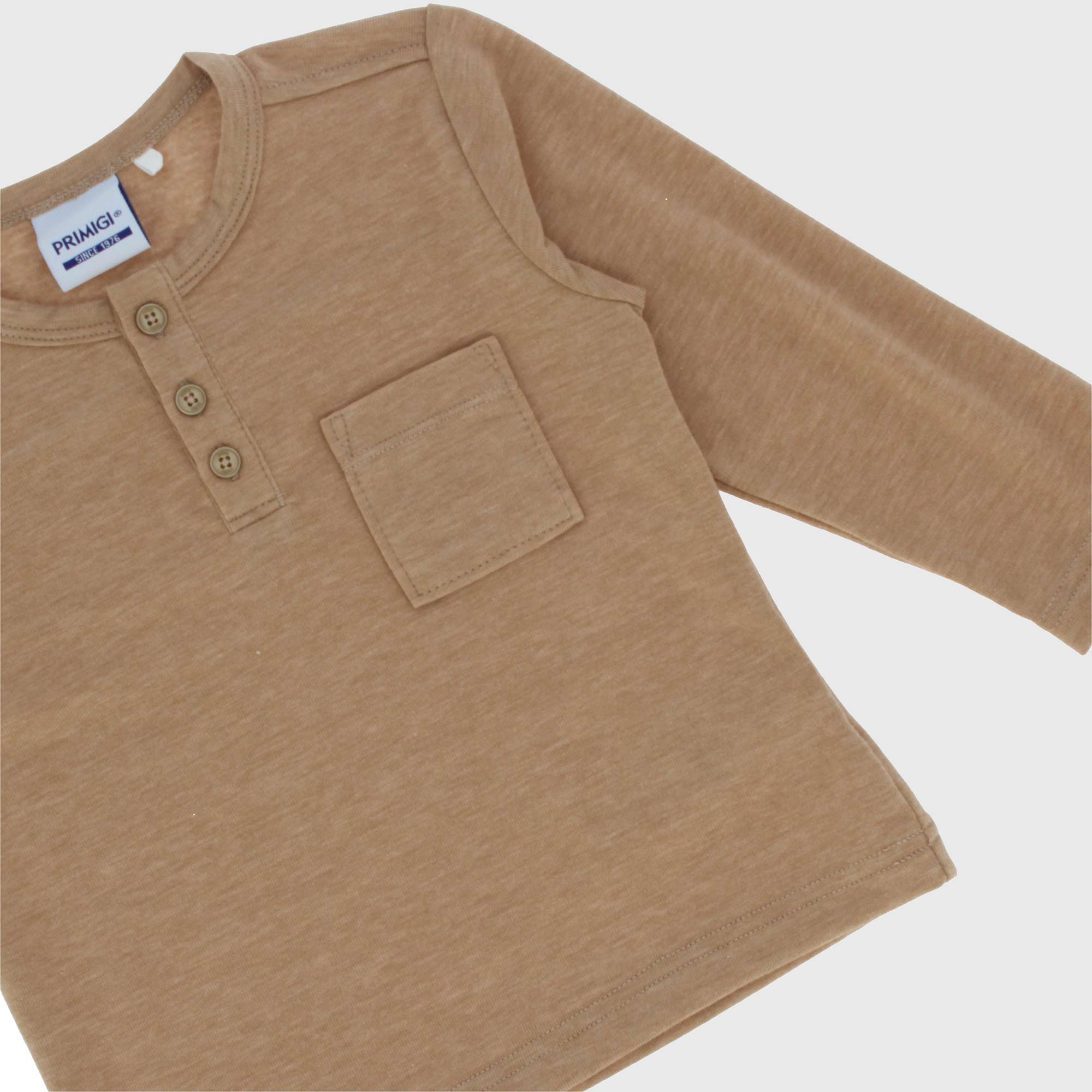 Maglietta serafino regular fit in tessuto soft touch, girocollo, a maniche lunghe. Taschina sul petto. Bottoncini sullo scollo.