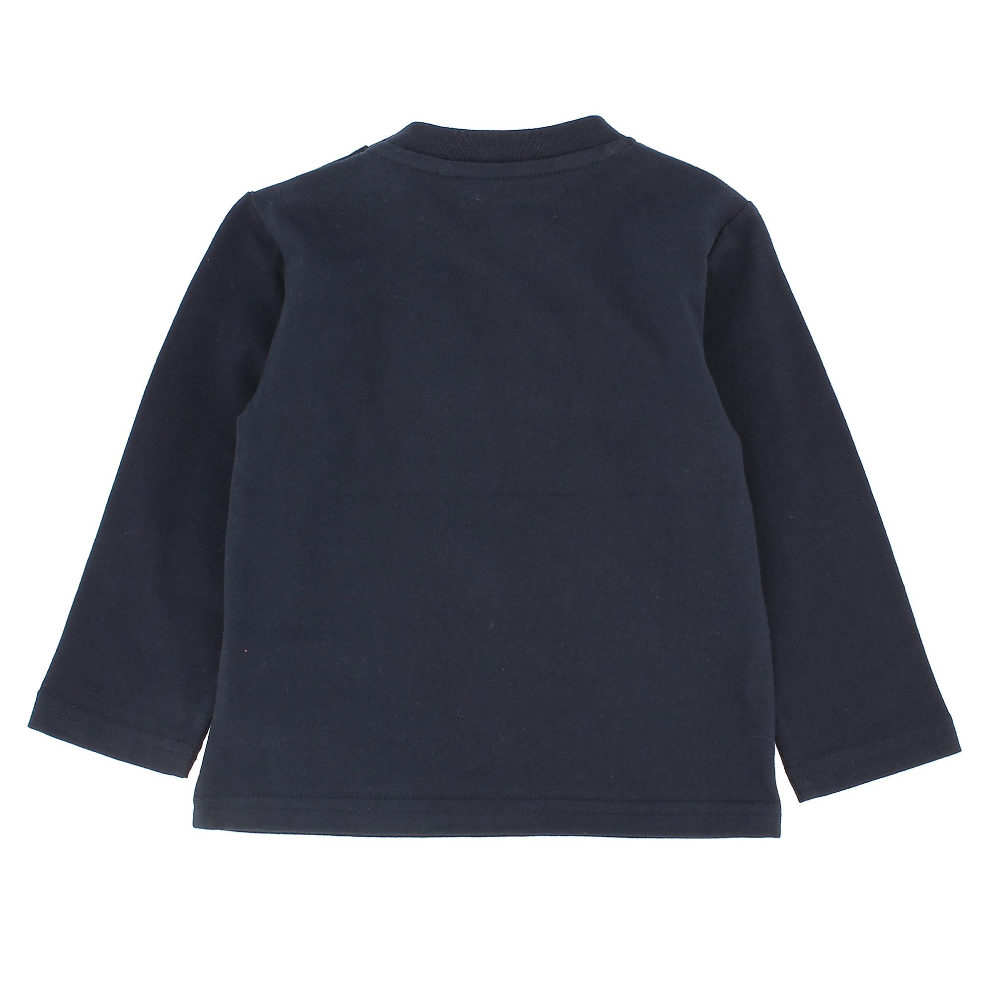 Maglietta in jersey, girocollo, a maniche lunghe. Chiusura con bottoni automatici sulla spalla. Stampa effetto velluto sul davanti.
