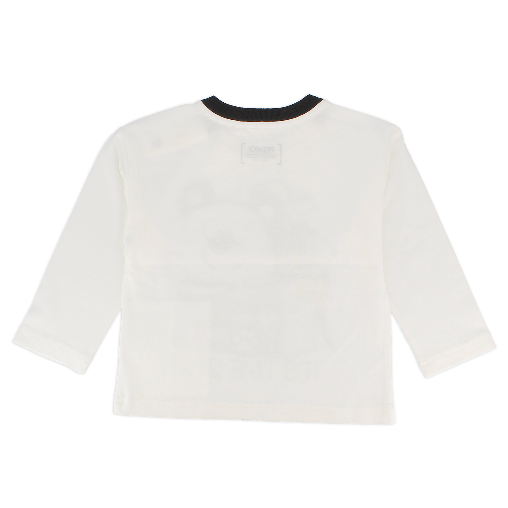 Maglietta in jersey, girocollo, a maniche lunghe. Chiusura con bottoni automatici sulla spalla. Stampa sul davanti.