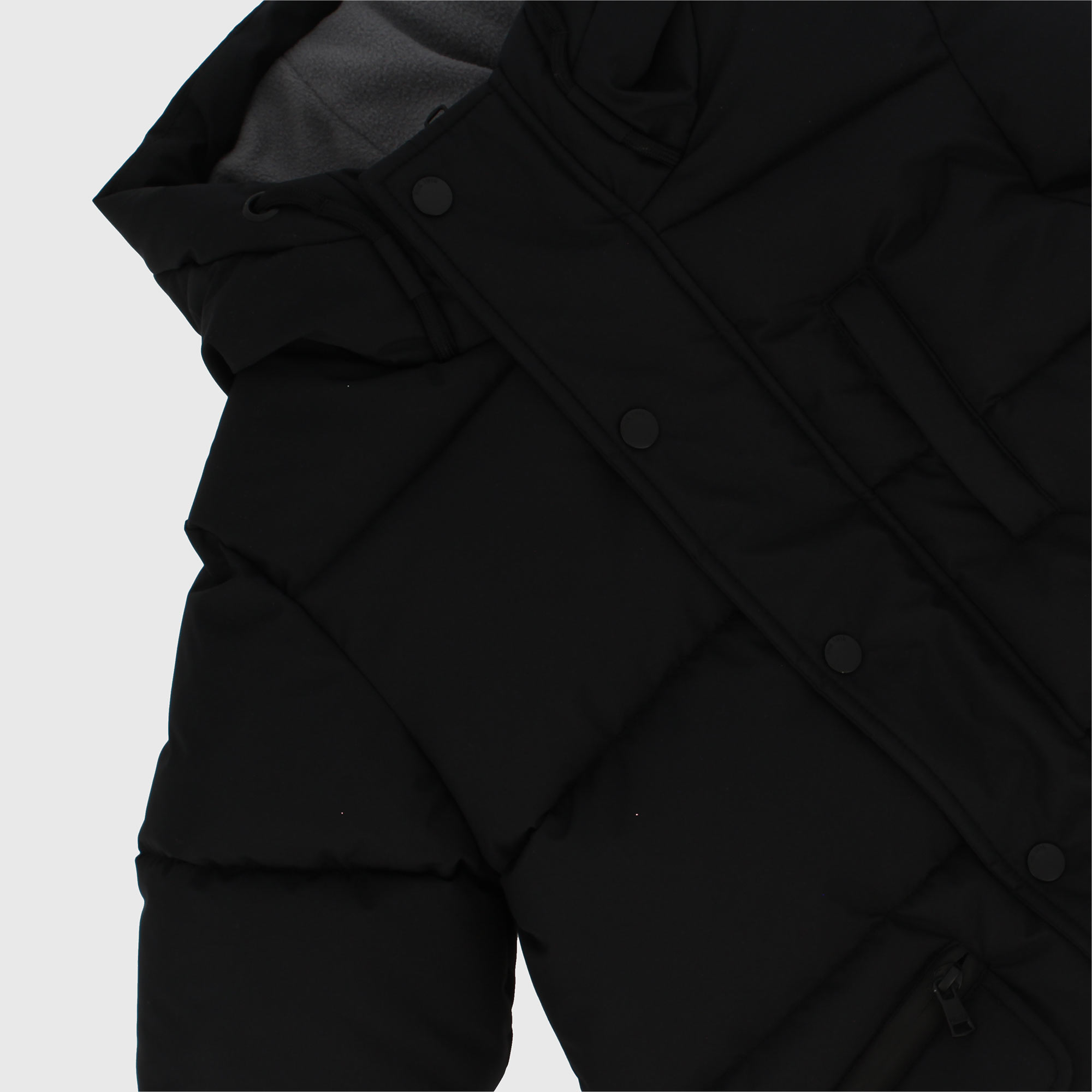 Giubbino con cappuccio, a maniche lunghe. Chiusura con zip e bottoni automatici sul davanti. Tasche frontali con bottoni automatici. Fodera interna in pile. Patch logo sulla manica.