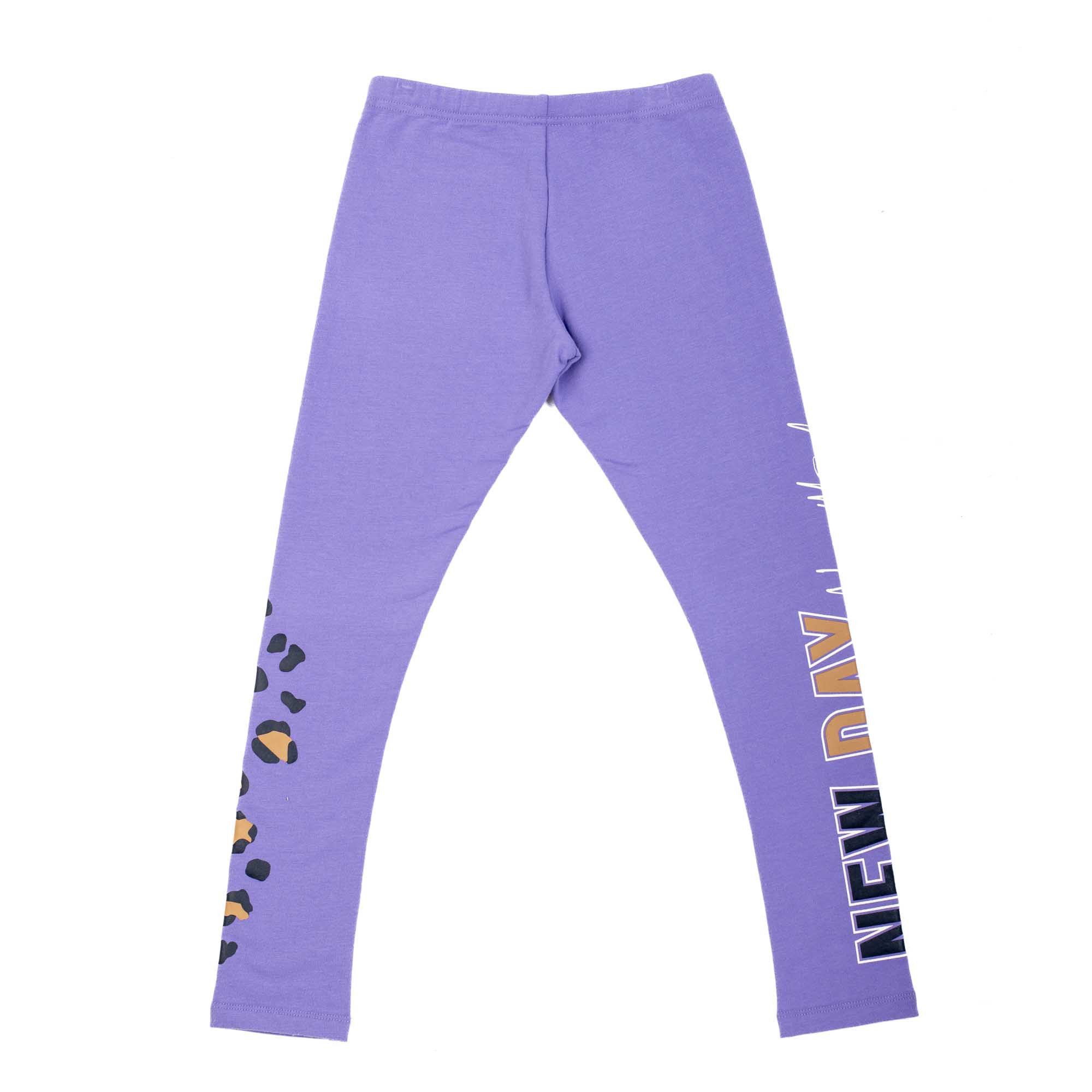 Leggings in felpa con vita elasticizzata, stampe laterali con scritte e motivo animalier.