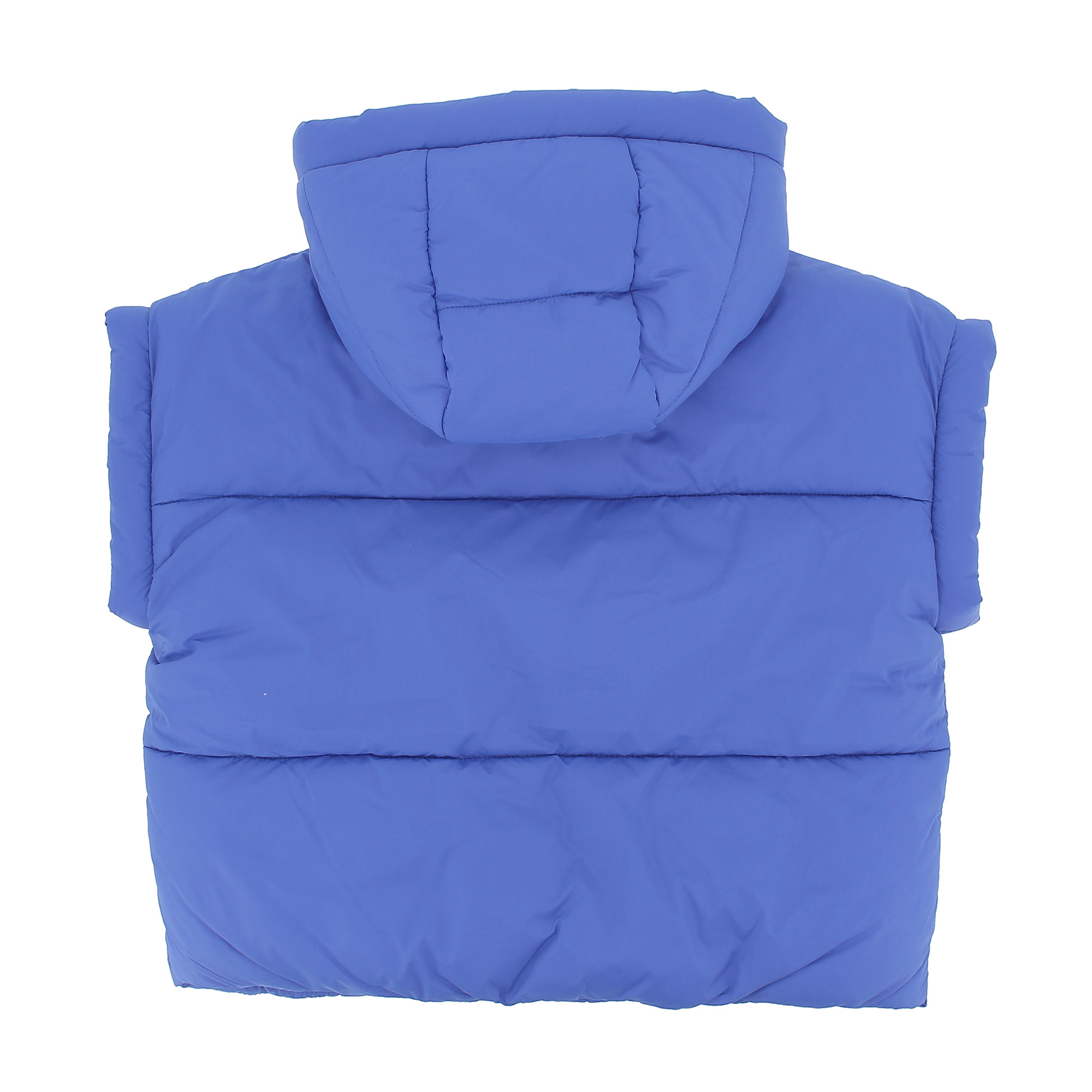 Gilet in nylon con cappuccio. Chiusura con zip e bottoni automatici sul davanti. Tasche anteriori.